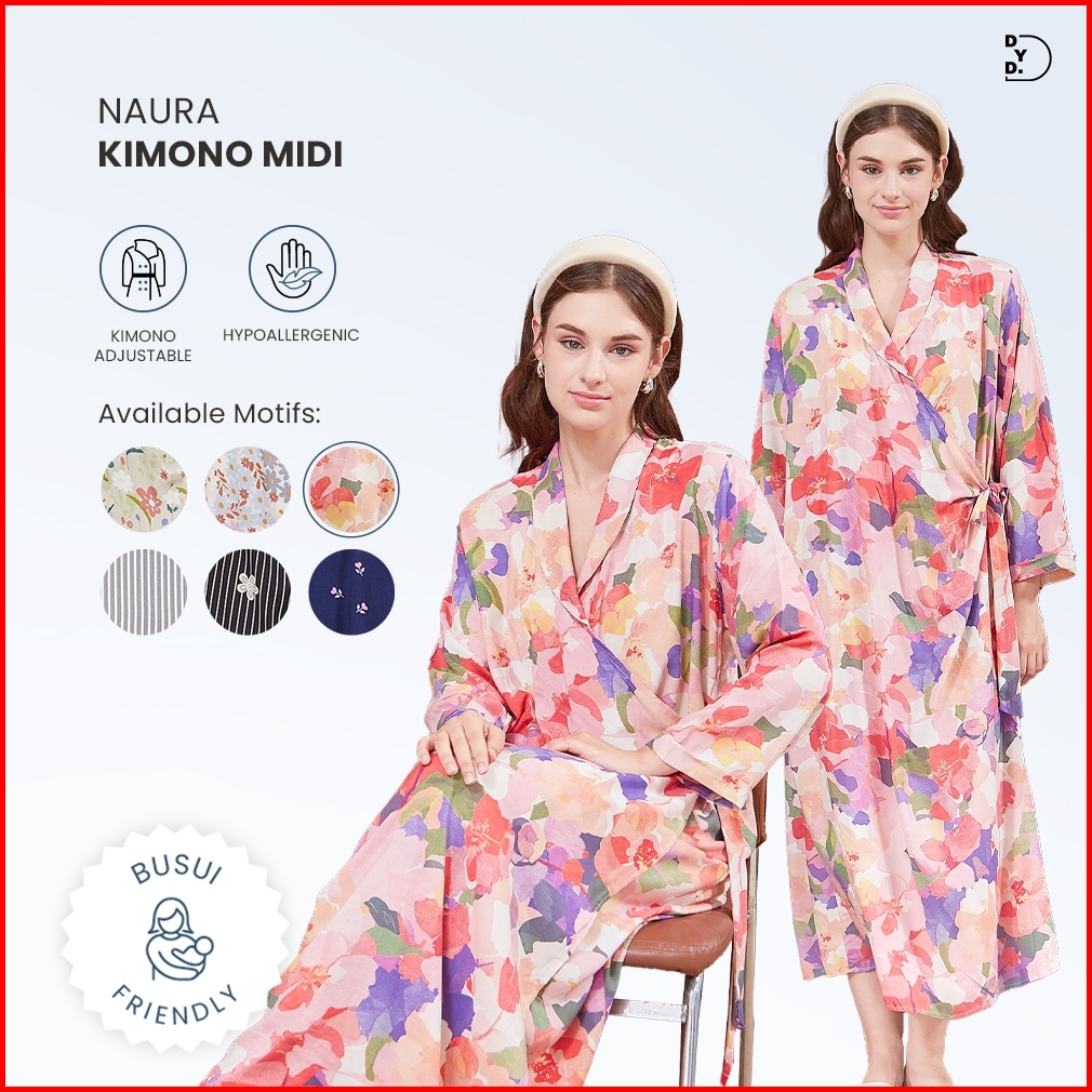 Dyd Label Naura Kimono Midi Daster Busui Lahiran Friendly Bahan Rayon Size Jumbo Dress Ibu Hamil Lengan Panjang Fit To X