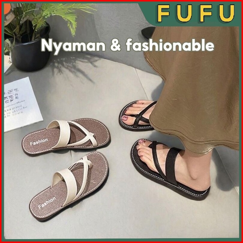 Fufu Sandal Wanita Kekinian Sandal Jepit Sandal Korean Style Sandal Teplek Wanita Sandal Slop Wanita Sendal Wanita Sanda