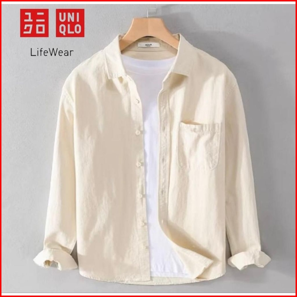 Kemeja Putih Uniqlo Pria Lengan Panjang Slim Fit