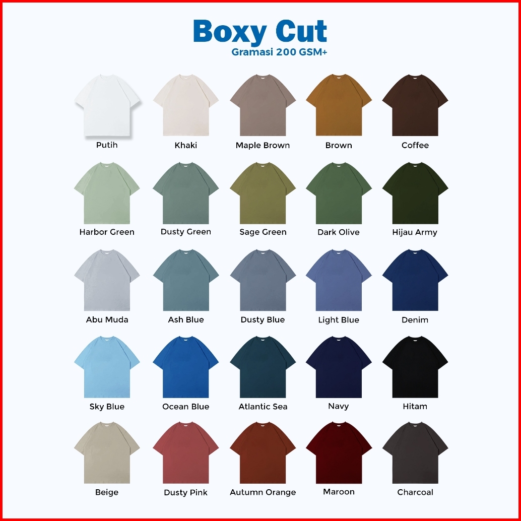BOXY Fit-Charcoal, BOXY Fit-Hitam, BOXY Fit-Khaki, BOXY Fit-Putih, BOXY Fit-AlmondBrown, BOXY Fit-LightBlue, BOXY Fit-DustyGreen, BOXY Fit-AbuMuda, BOXY Fit-MaroonBrgnd, BOXY Fit-OceanBlue, BOXY Fit-DustyPink, BOXY Fit-Navy, BOXY Fit-SkyBlue, BOXY Fit-AtlanticSea, BOXY Fit-SageGreen, BOXY Fit-HijauArmy, BOXY Fit-Coffee, BOXY Fit-BoldDenim, BOXY Fit-AutumOrange, BOXY Fit-HarborGreen, BOXY Fit-DustyBlue, BOXY Fit-Beige, BOXY Fit-AshBlue, BOXY Fit-MapleBrown, BOXY Fit-DarkOlive