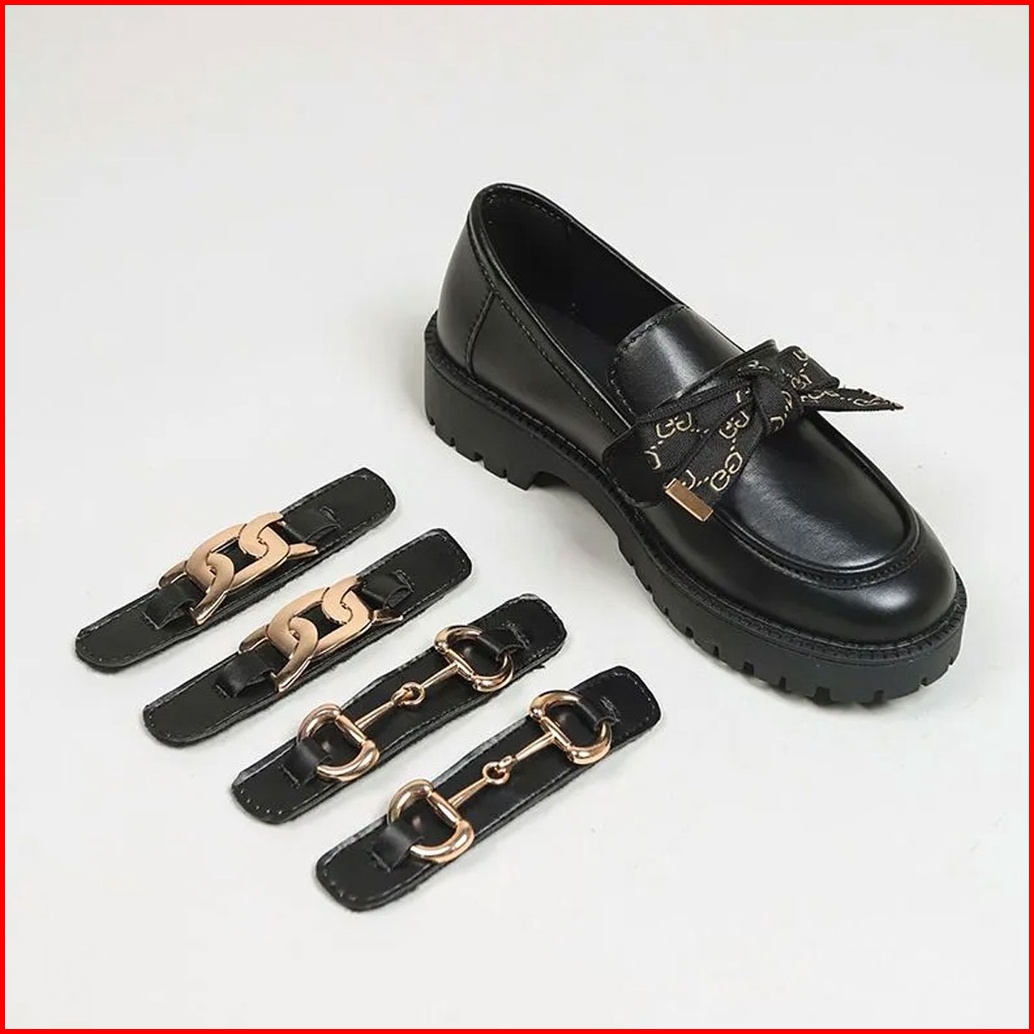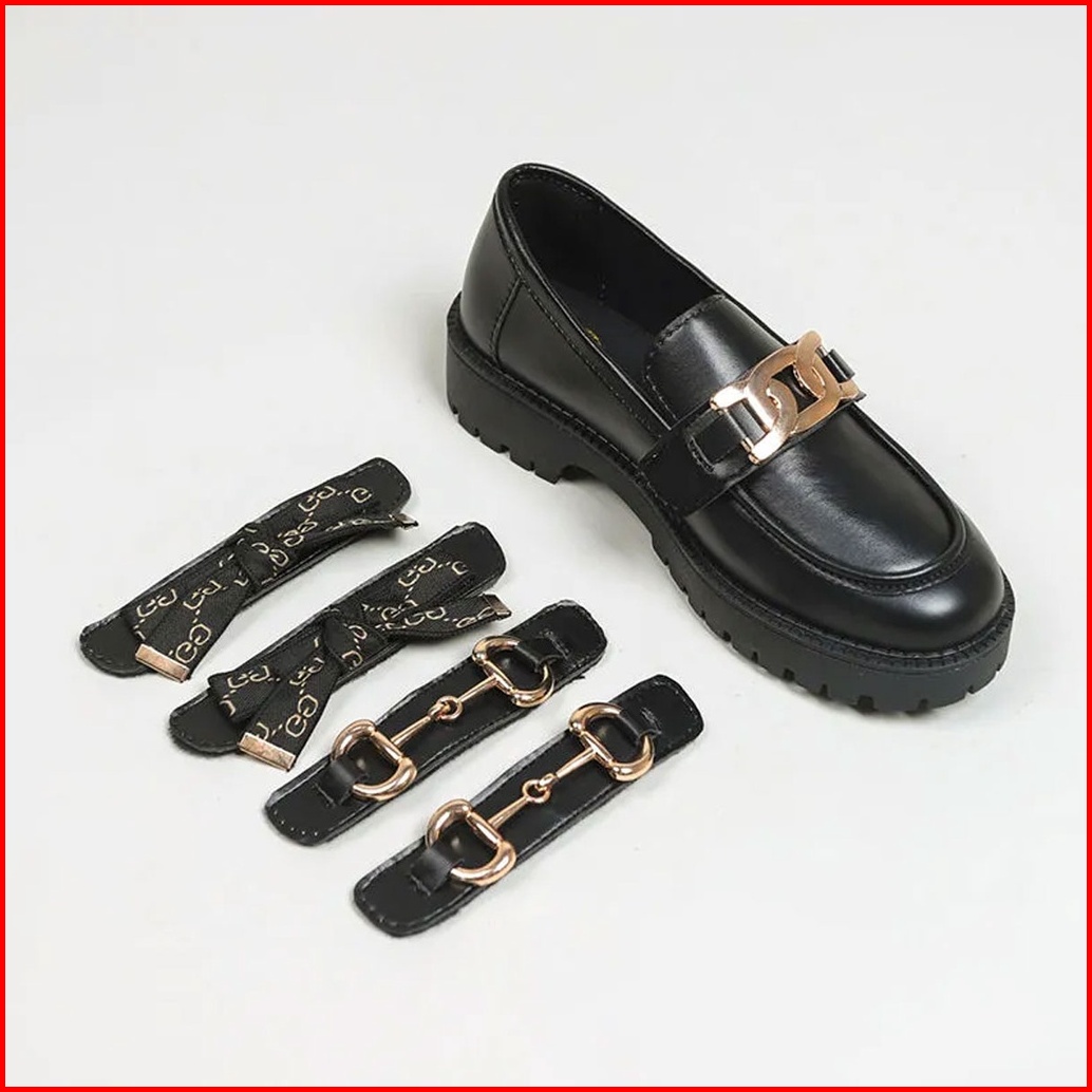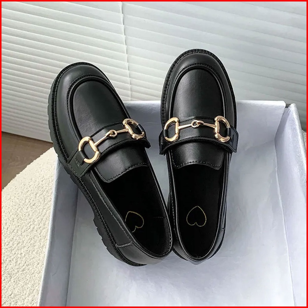 Sepatu Docmart Wanita Rantai Logam Fashion Korea Flat Loafers Kasual Mary Janes Hitam St043