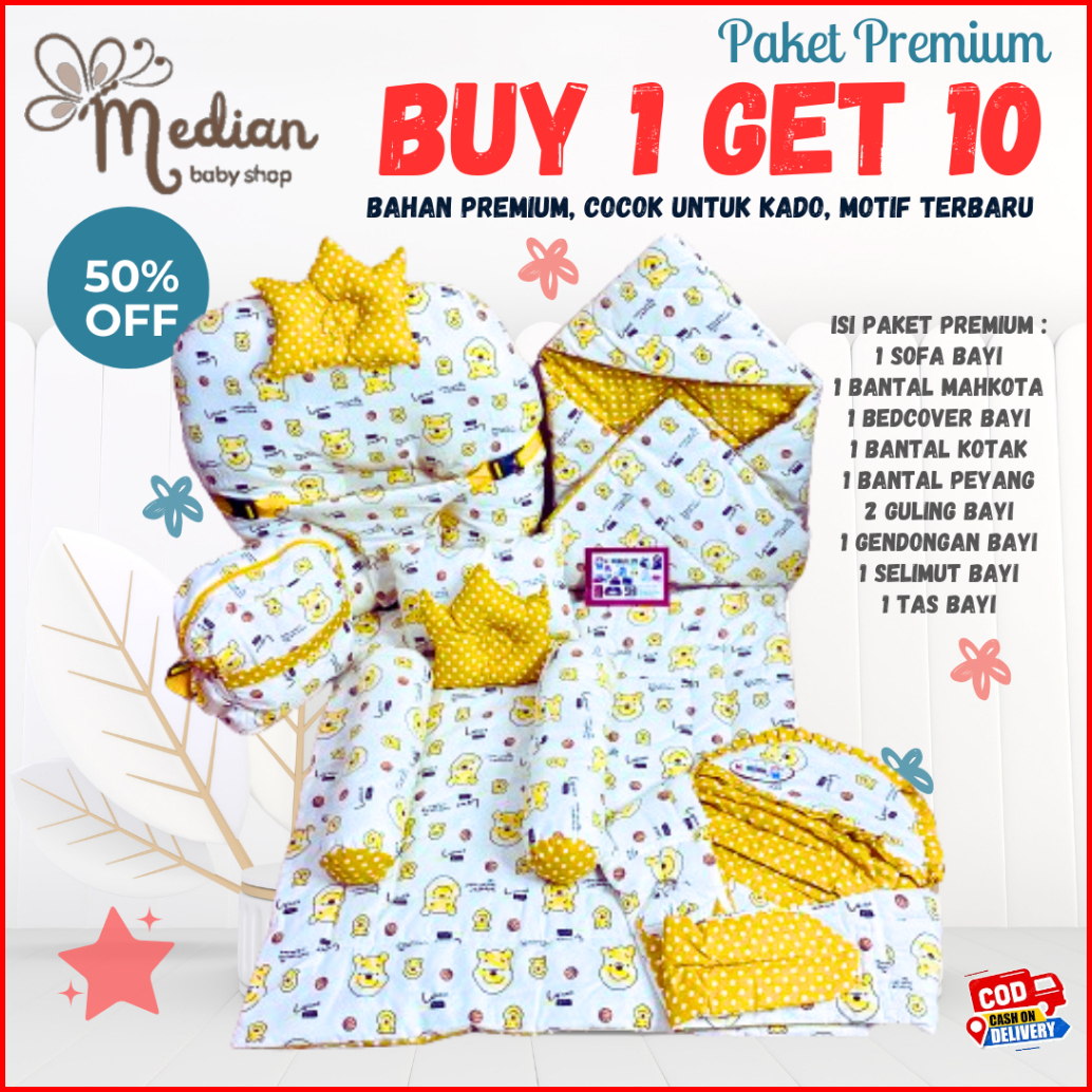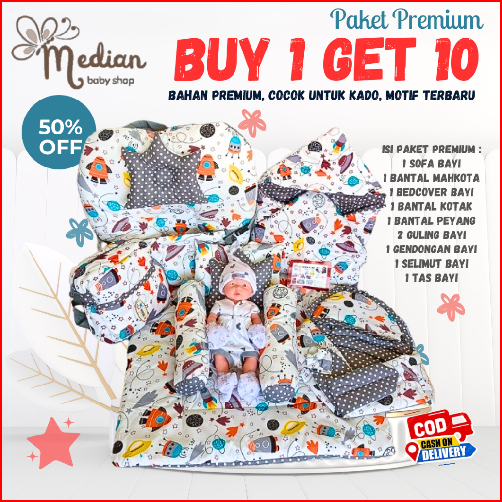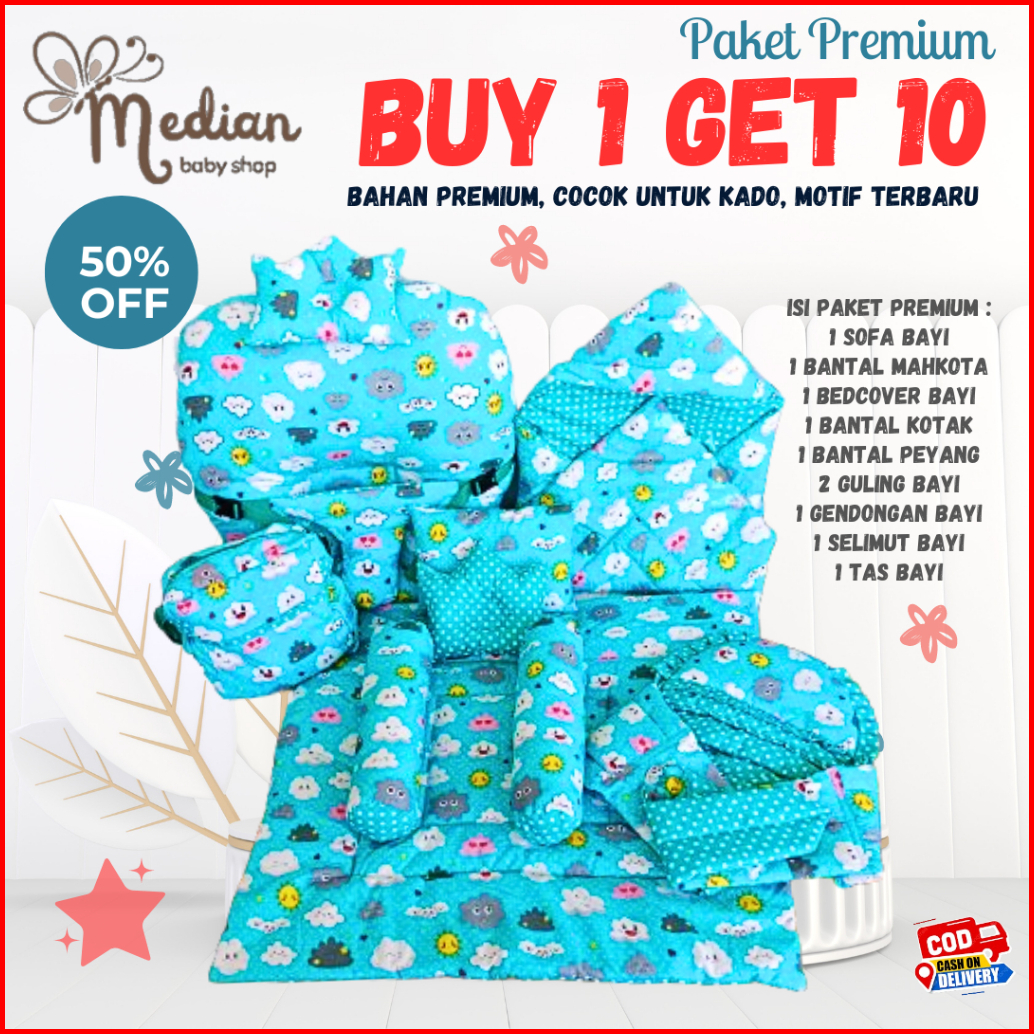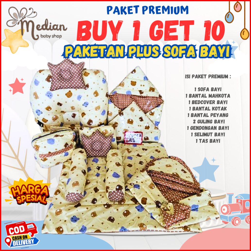 Paket Premium Buy 1 Get 10 Sofa Bayi Bedcover Matras Bayi Selimu Topi Gendongan Samping Tas Bayi