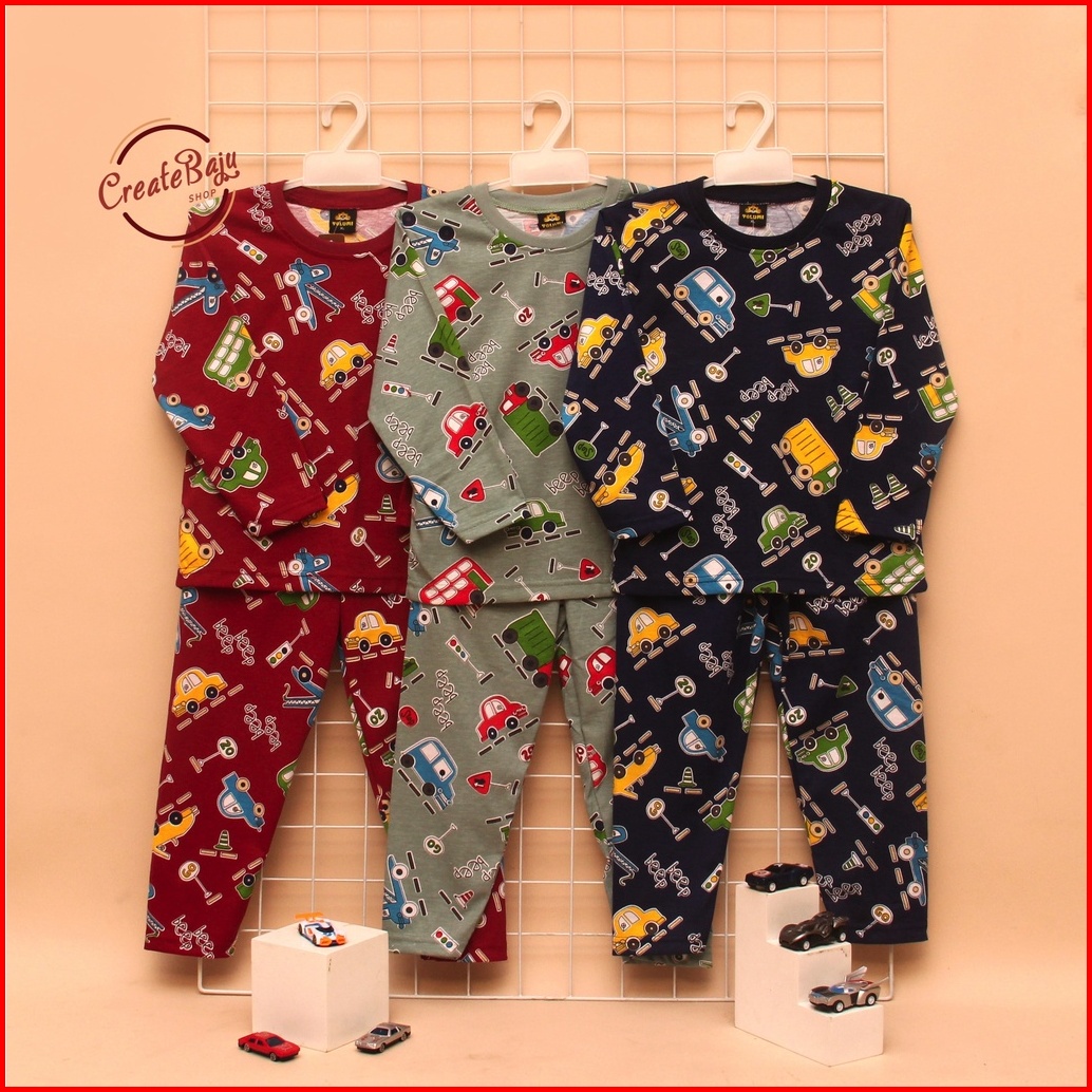 Piyama Kaos Anak Laki 1-7 Tahun Mobil Beep Baju Tidur Anak Lengan Panjang Terlaris