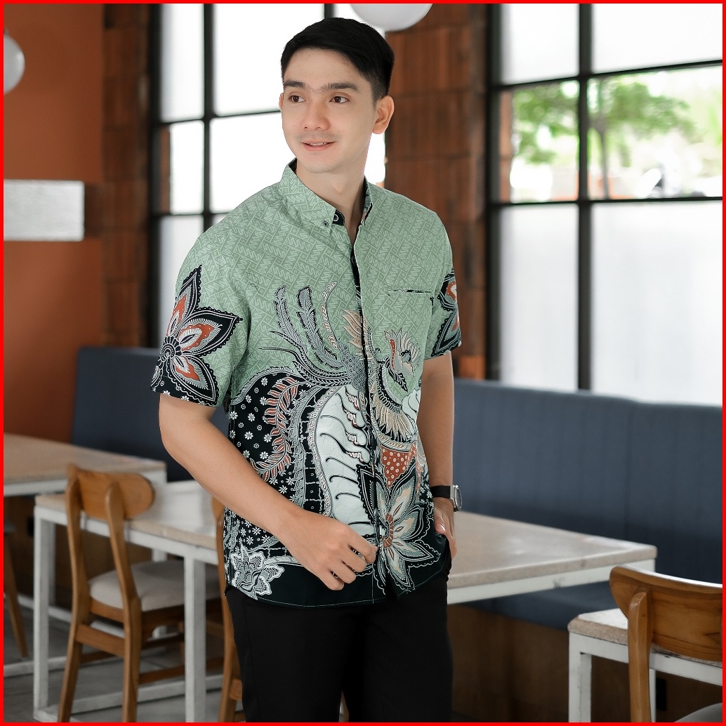 Dgm Batik Pria Sage Lapis Furing Lengan Pendek Premium Batik Puring Motif Kembang Nusantara 2708