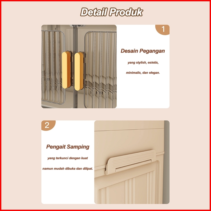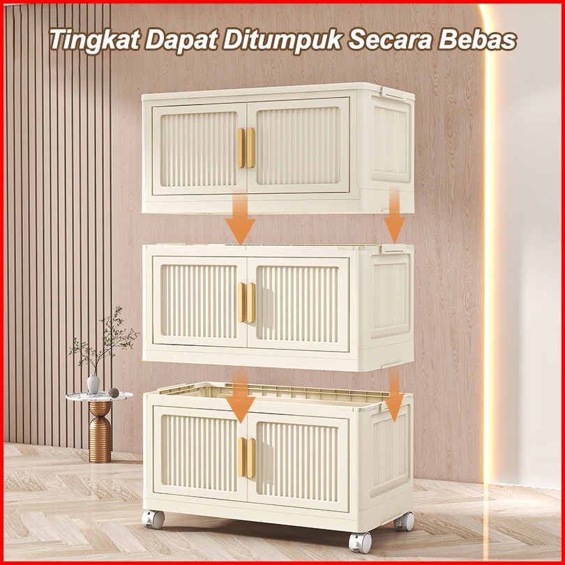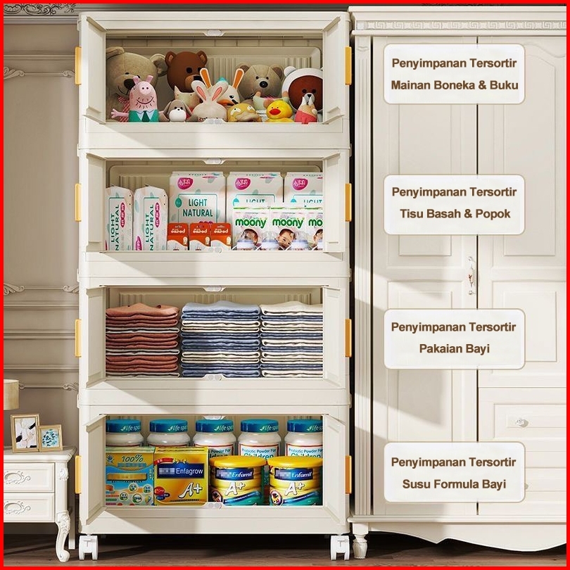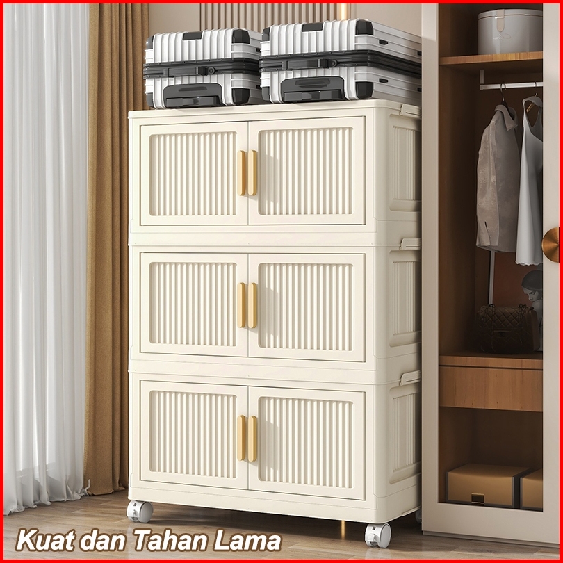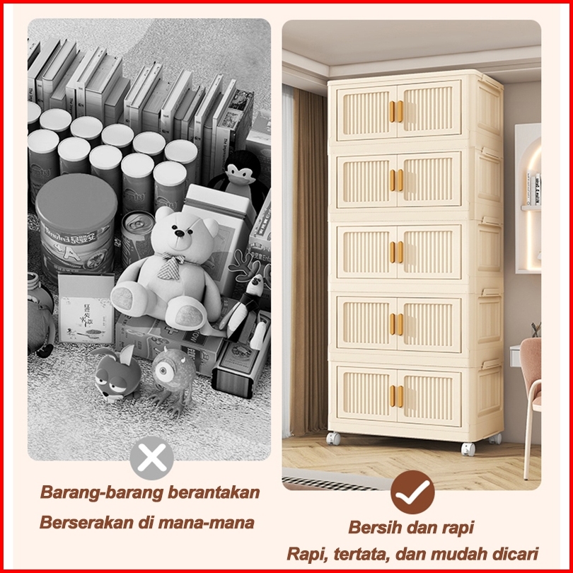Lemari Plastik Susun Lemari Pakaian Plastik Anti Debu Multifungsi Lipat Dengan Roda Lebar 55cm