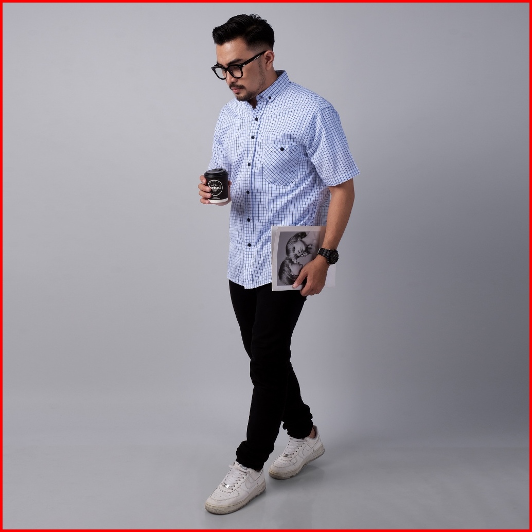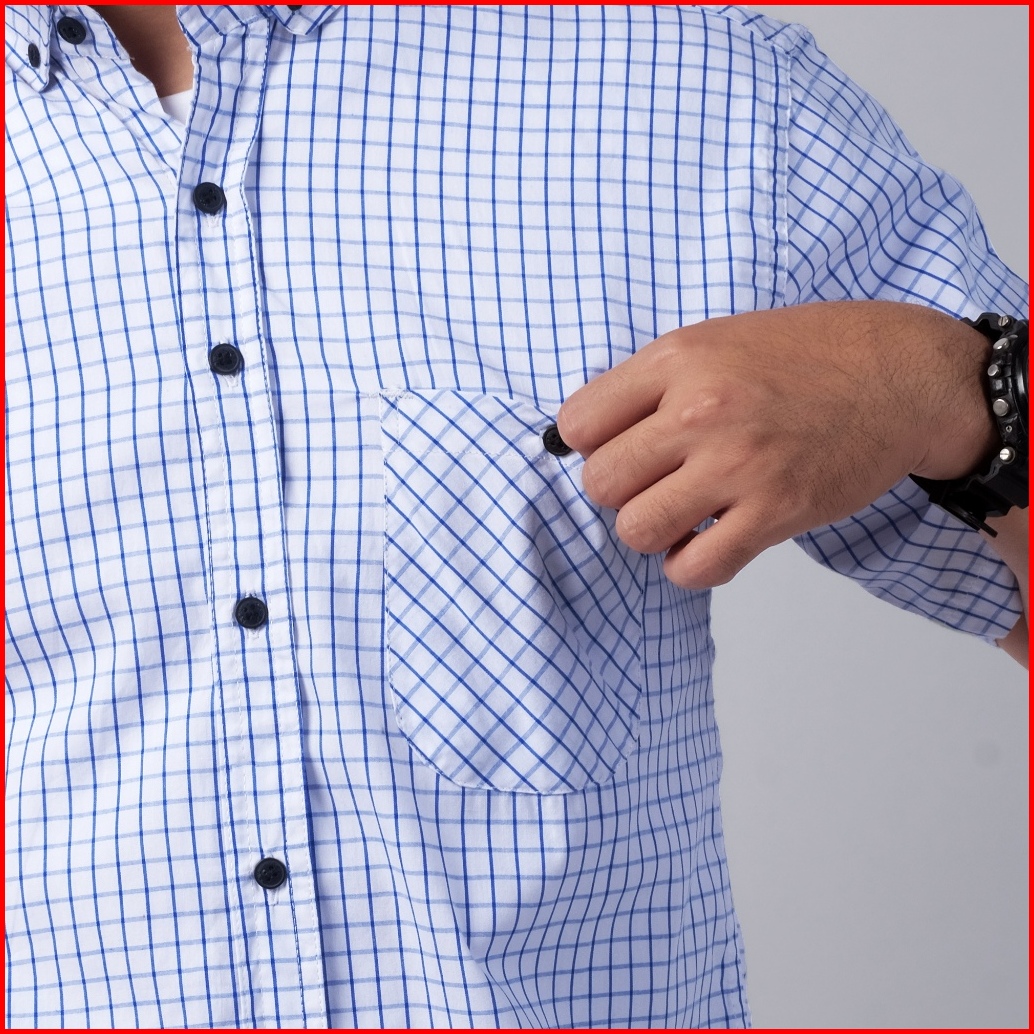 Dgm Kemeja Pria Lengan Pendek Kotak Yarndyed Biru Kemeja Yarndyed 2777