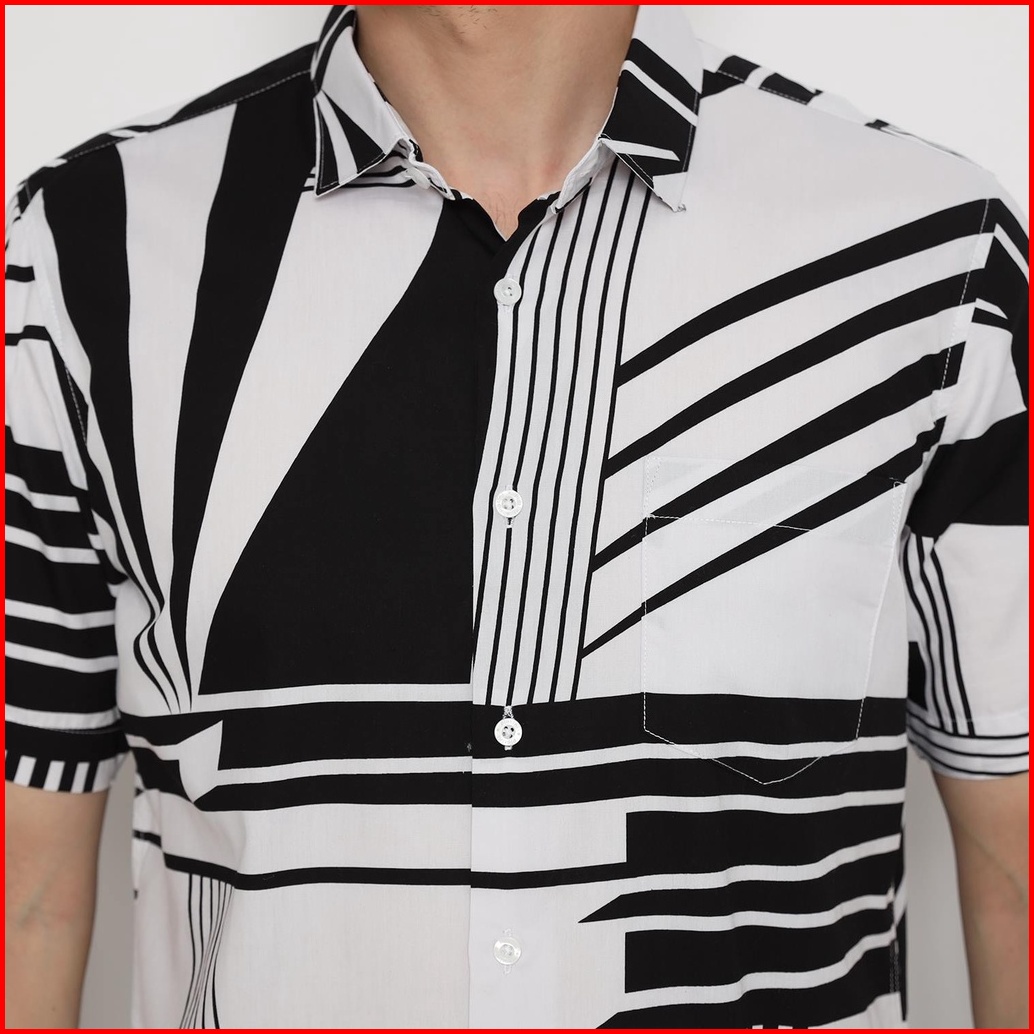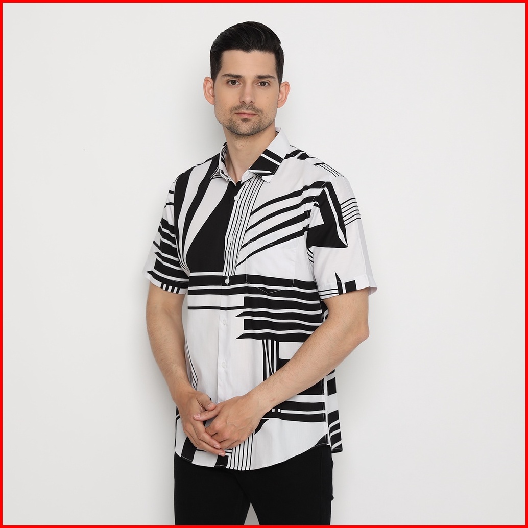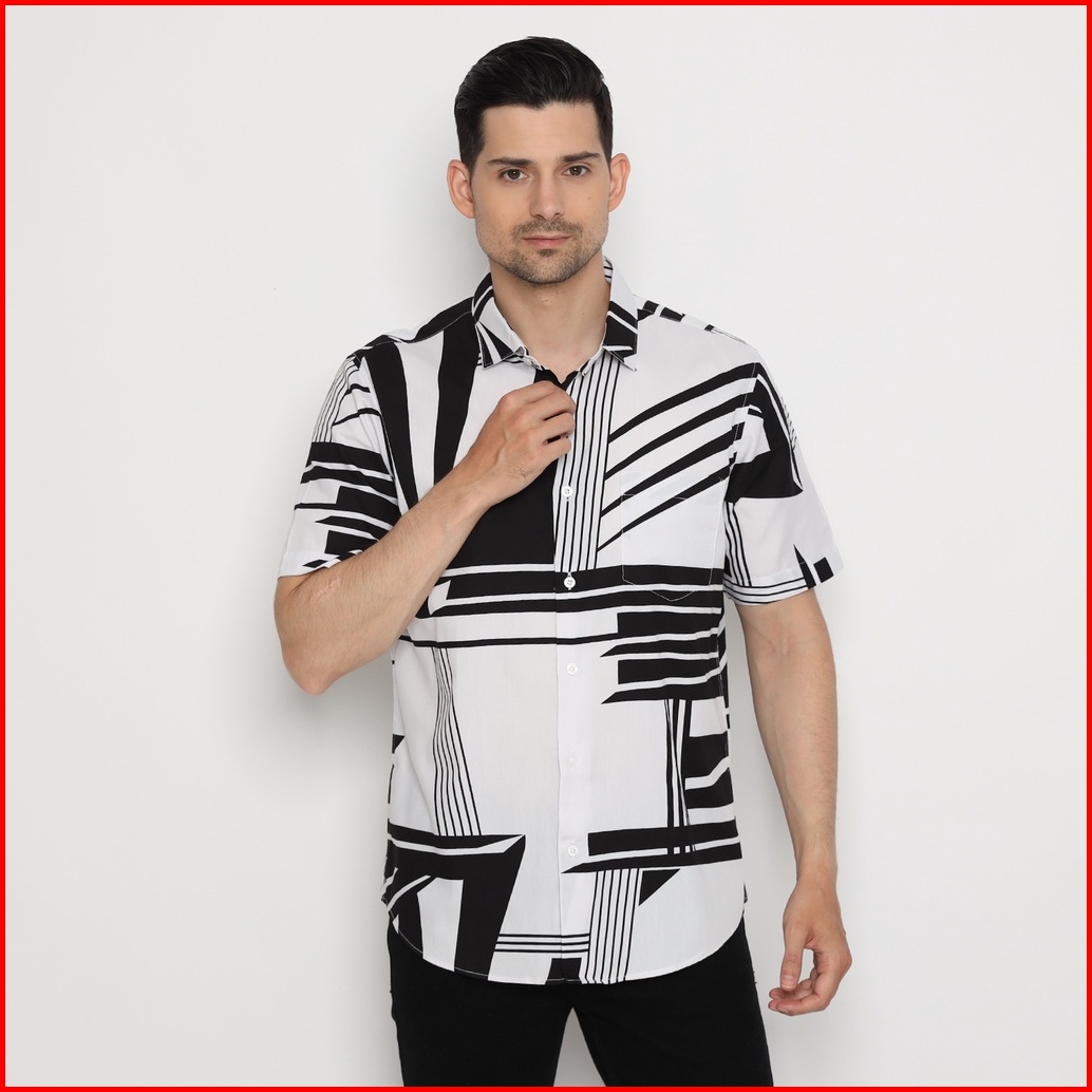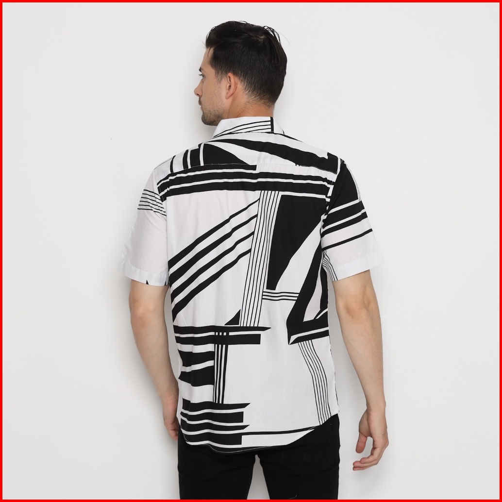 Platini Kemeja Motif Print Pria Lengan Pendek Katun Putih 73376