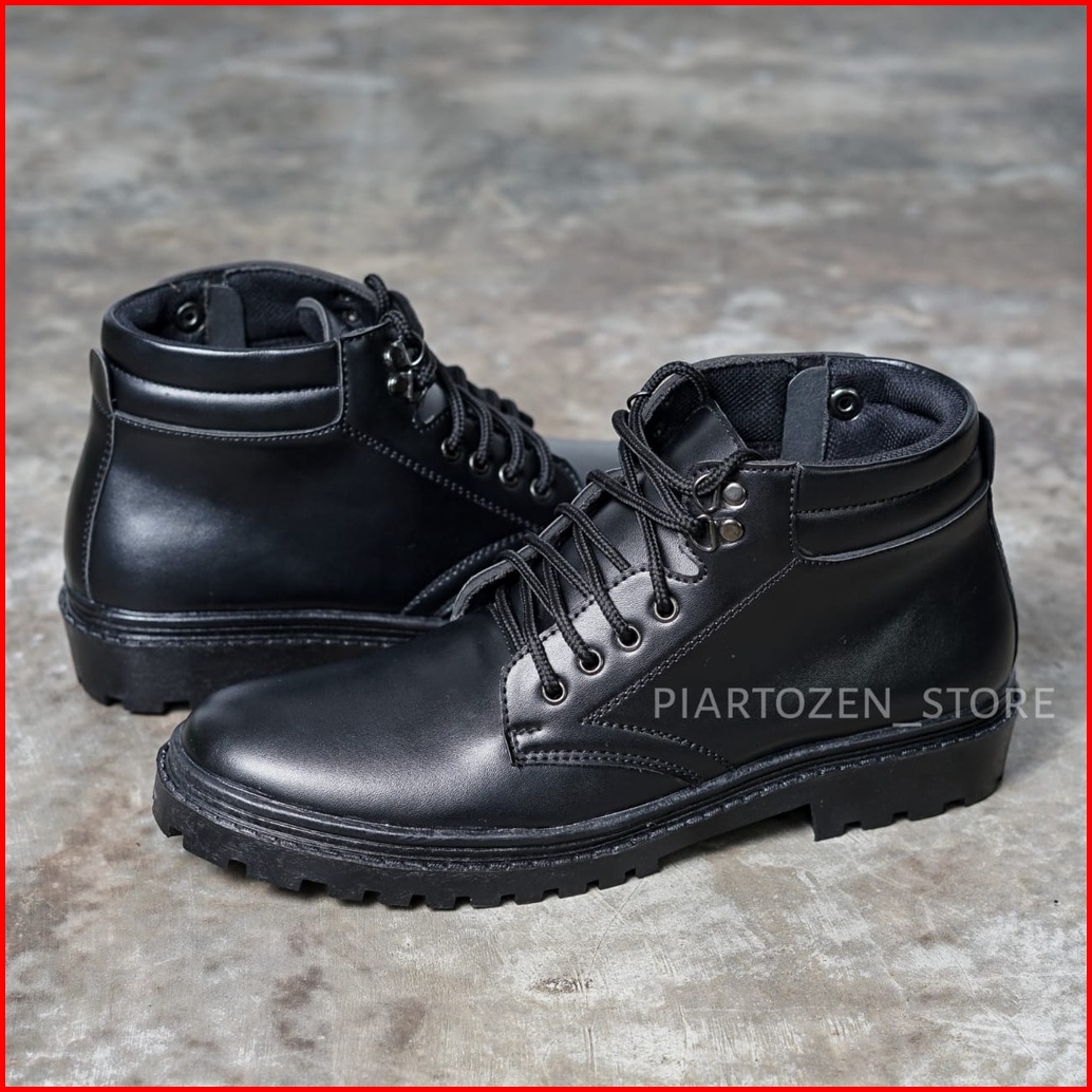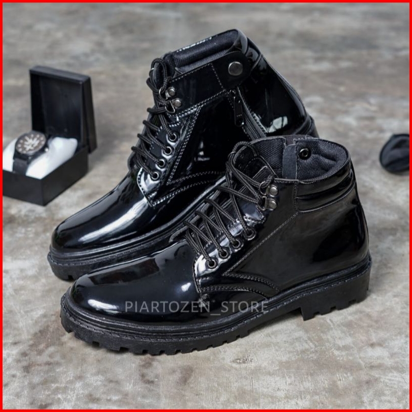 Sepatu Pdh Pria Satpam Dan Security Tali Resleting Warna Hitam Kilap Dan Doff