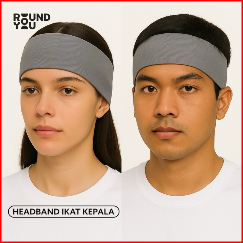 Round You Headband Olahraga-bandana Elastis Anti Slip Ikat Kepala Sport Fitness Gym Yoga Lari-abu