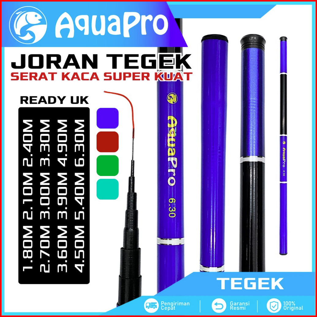Aquapro Joran Tegek Pancing Serat Kaca Fiber Glass Portable Action Lentur Super Kuat Fleksibel Dan Tahan Lama