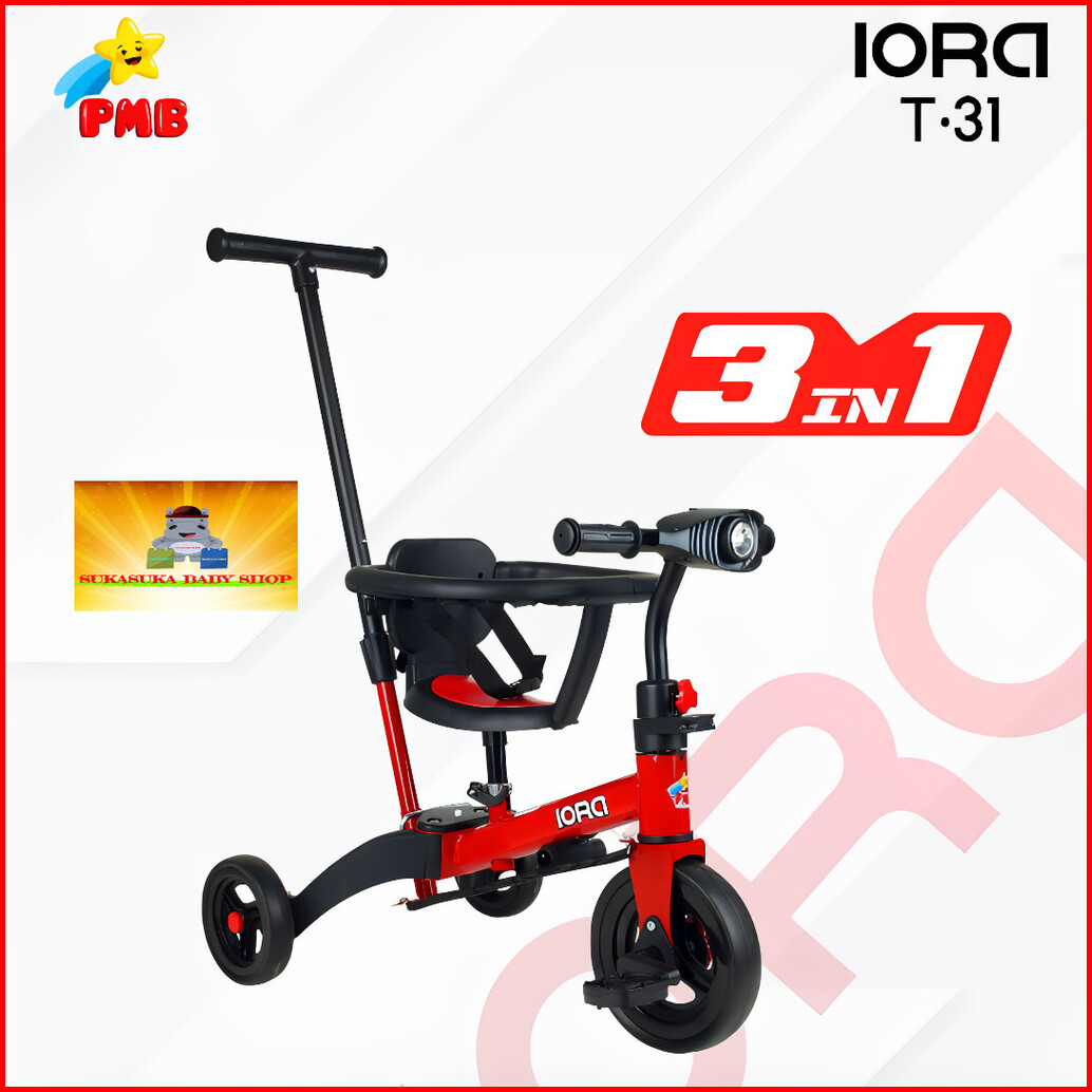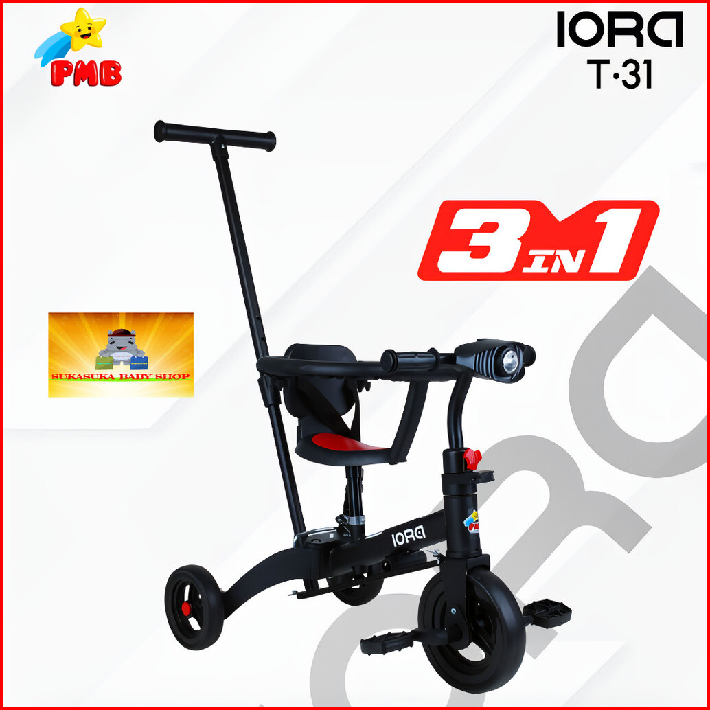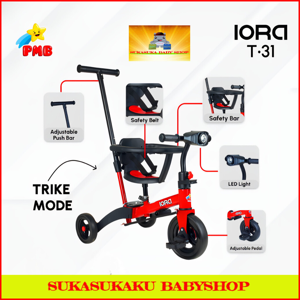 Sepeda Anak Roda Tiga Pmb Iora T 31 Lampu Musik Balance Bike 6 In 1 Dorongan Stir