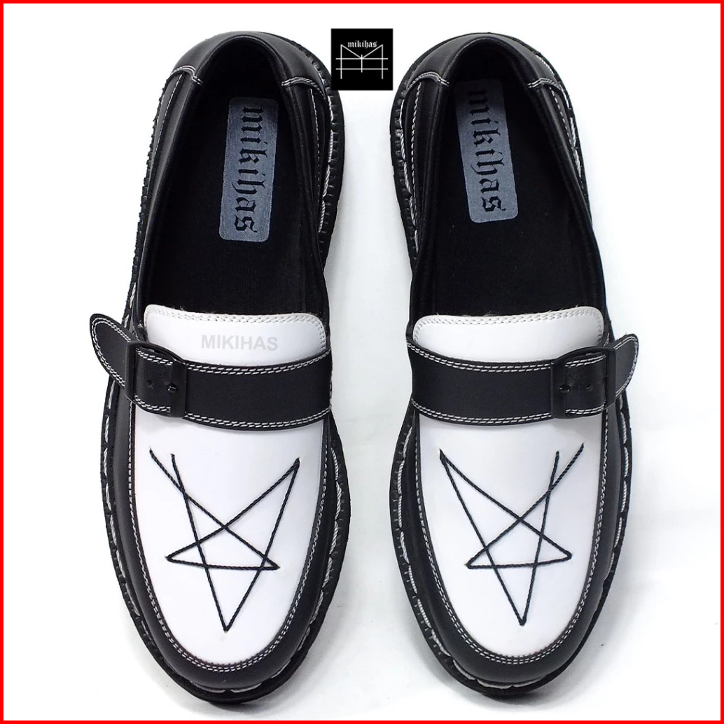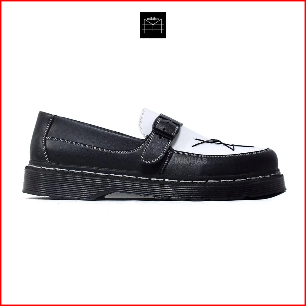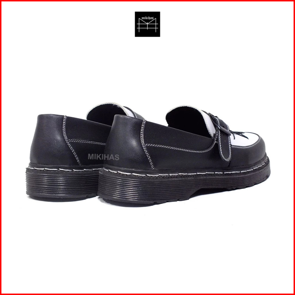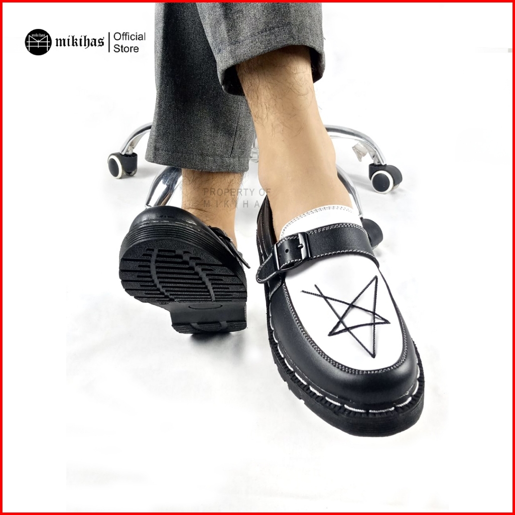 Mikihas - Sepatu Loafers Pria Kasual Kulit Hitam Putih Bintang Slip On - R7 Star