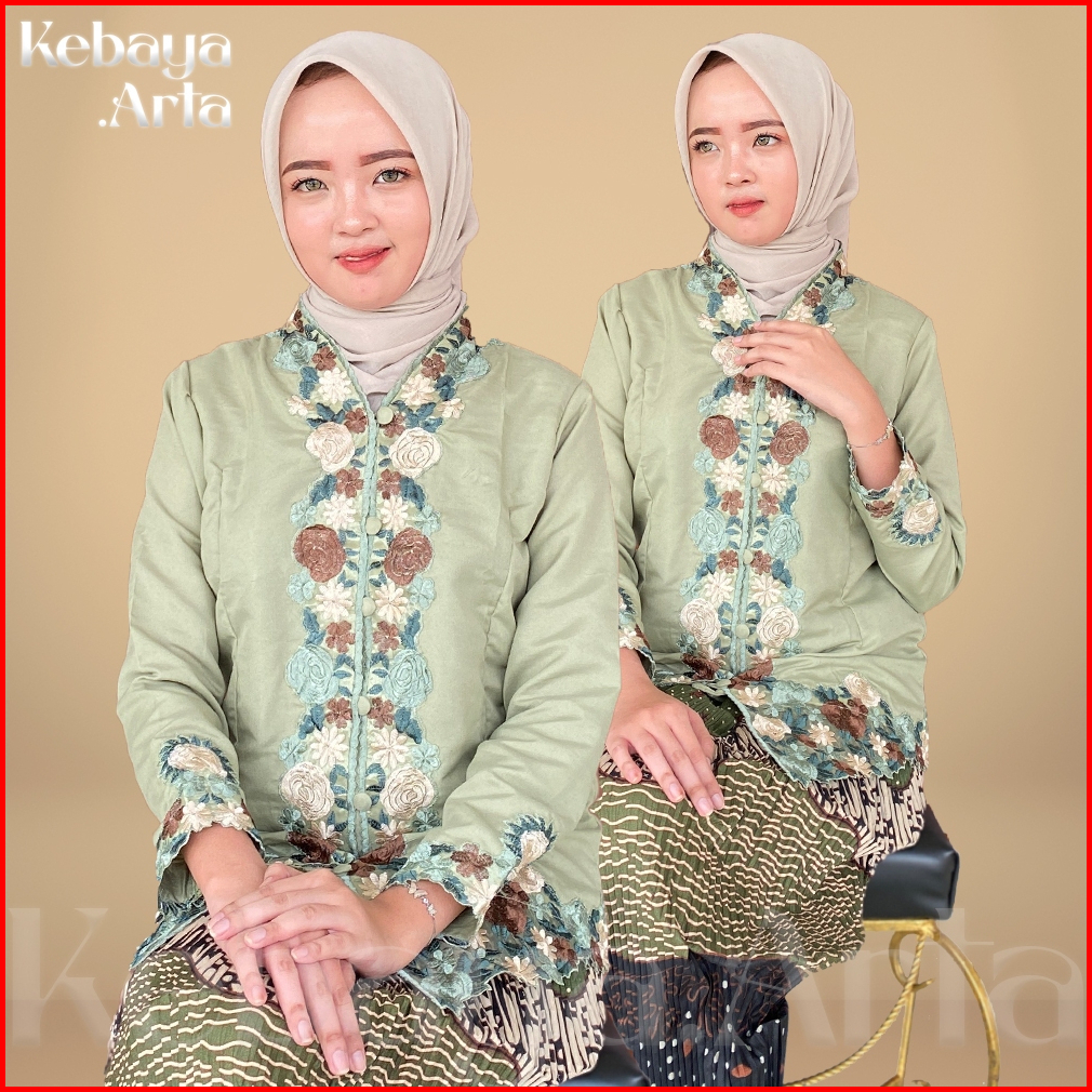 Kebayaarta - Kebaya Encim Bordir Motif Bunga Warna Lengan Panjang Bahan Katun Premium Size S - Jumbo