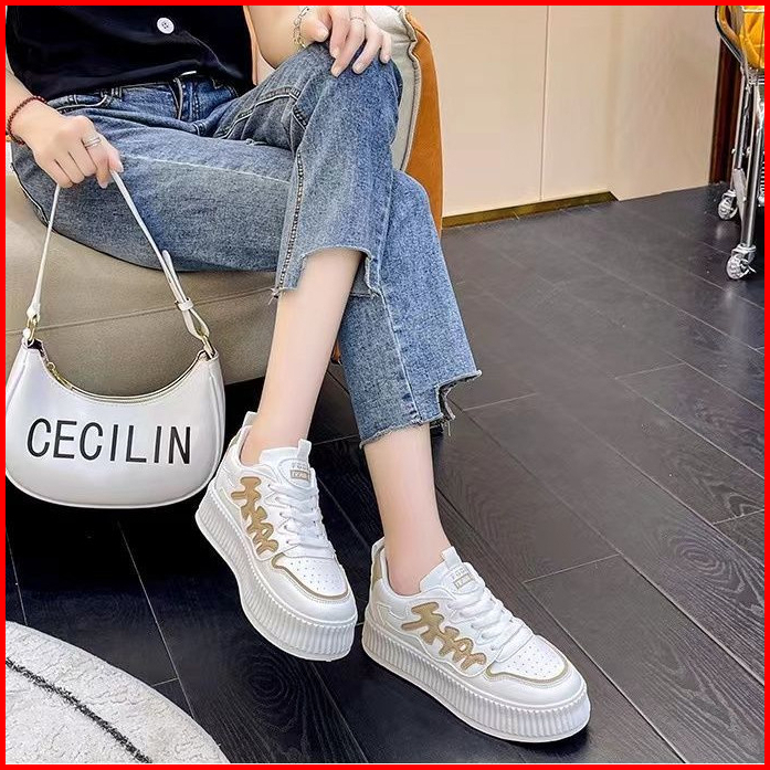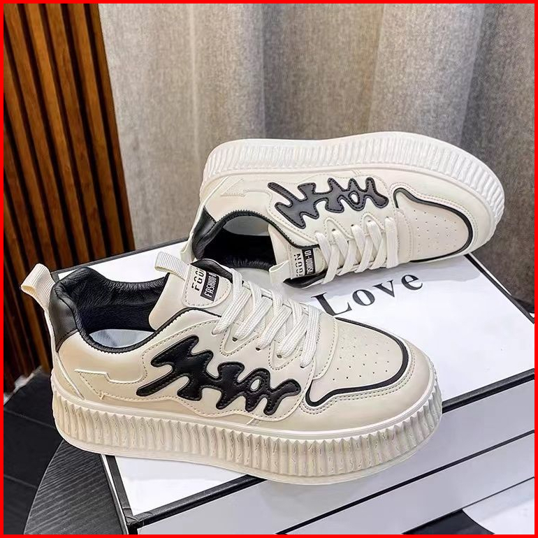 Qns Sepatu Sneakers Wanita Sepatu Sekolah Flatshoes Putih Hitam Khaki Sepatu Chunky Shoes Qn301
