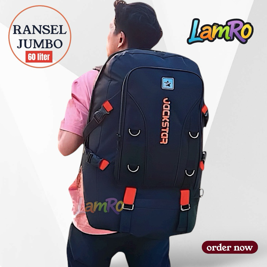 Tas Ransel Jumbo 60L Waterproof | Backpack Extra Besar Travel Hiking Multifungsi Kuat & Tebal