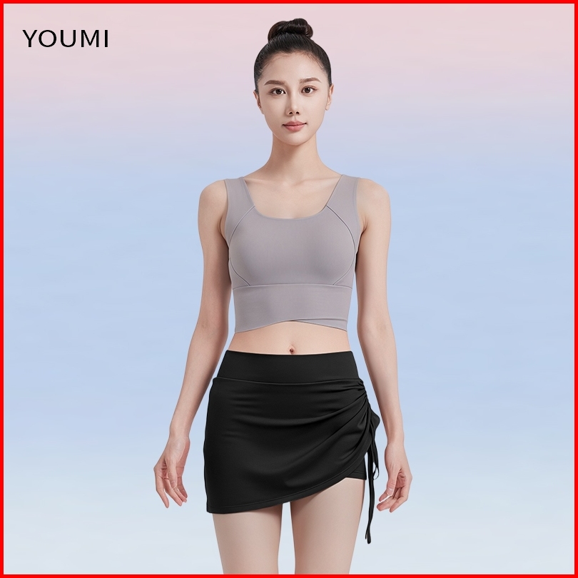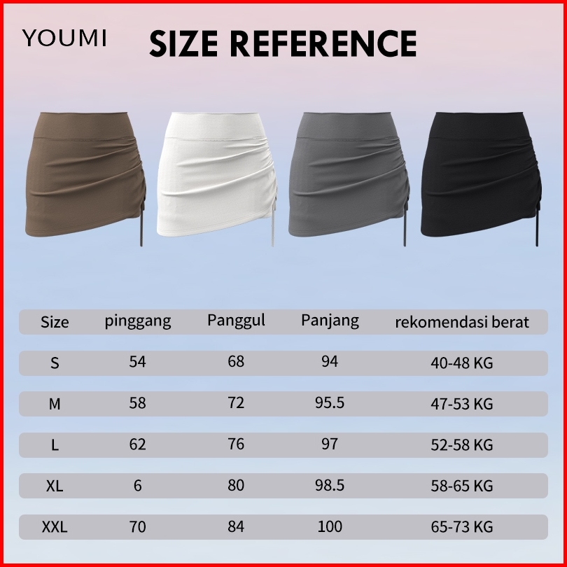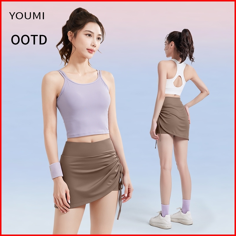 Rok Olahraga Wanita Tali Serut Samping Dengan Inner Celana Pendek Yoga Gym Senam Fitness Pilates Tenis Skirt Ym125