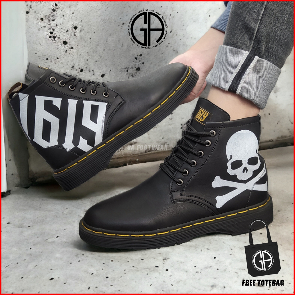 Ga Footwear Maskul - Sepatu Boots Pria Kulit Skul Tengkorak