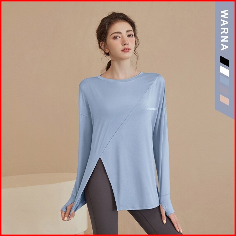 Youmi Baju Gym Atasan Kaos Olahraga Polos Wanita Lengan Panjang Manset Cewek Oversize Lari Badminton Jogging T Shirt Lon