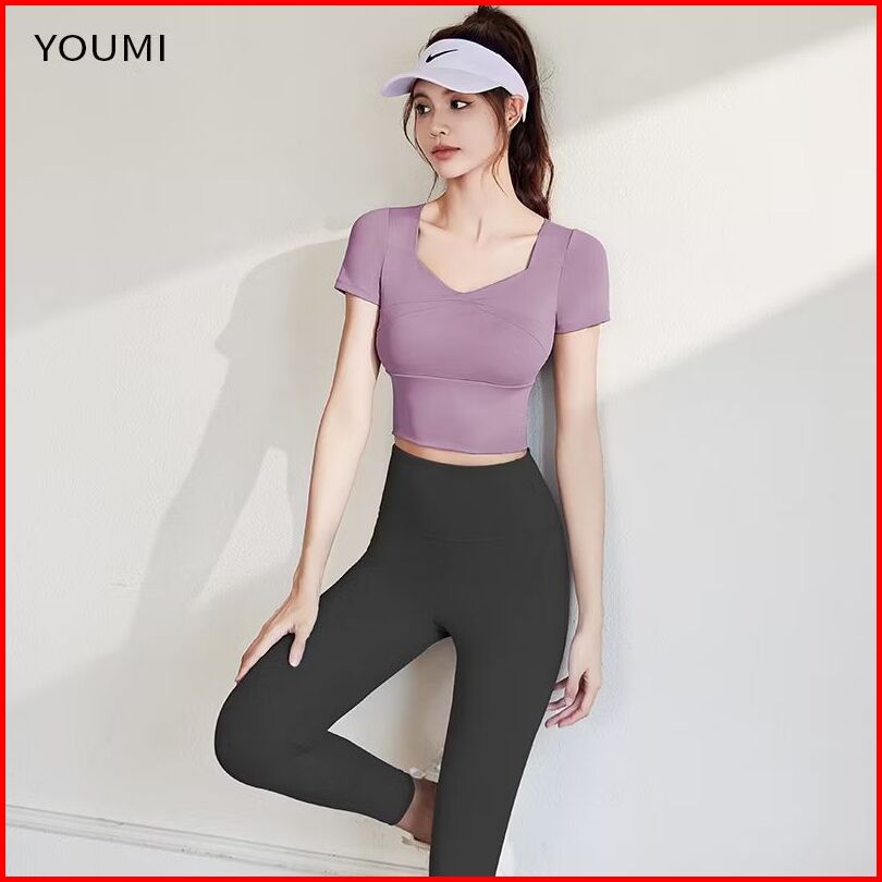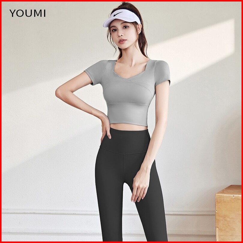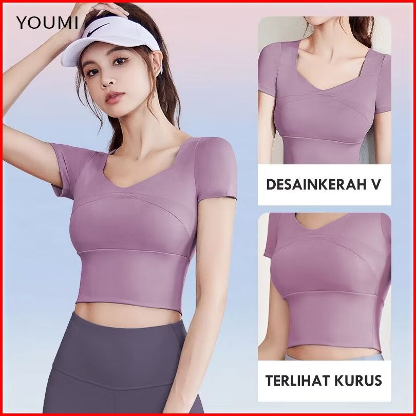 Youmi Kaos Olaraga Wanita Yoga Gym Pilates Outfit Atasan Lengan Pendek Fit Body Baju Senam Wanita Aerobic Terbaru Slimfi