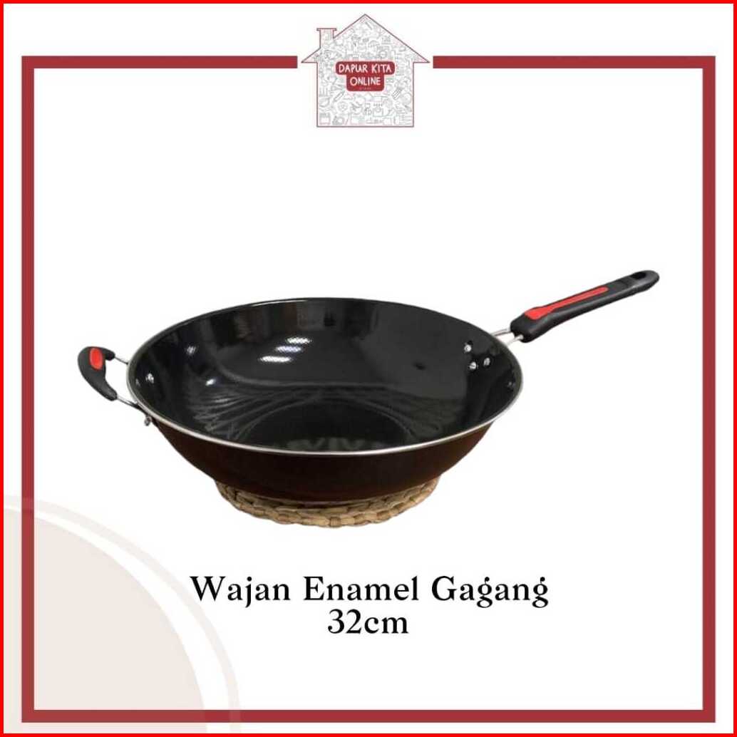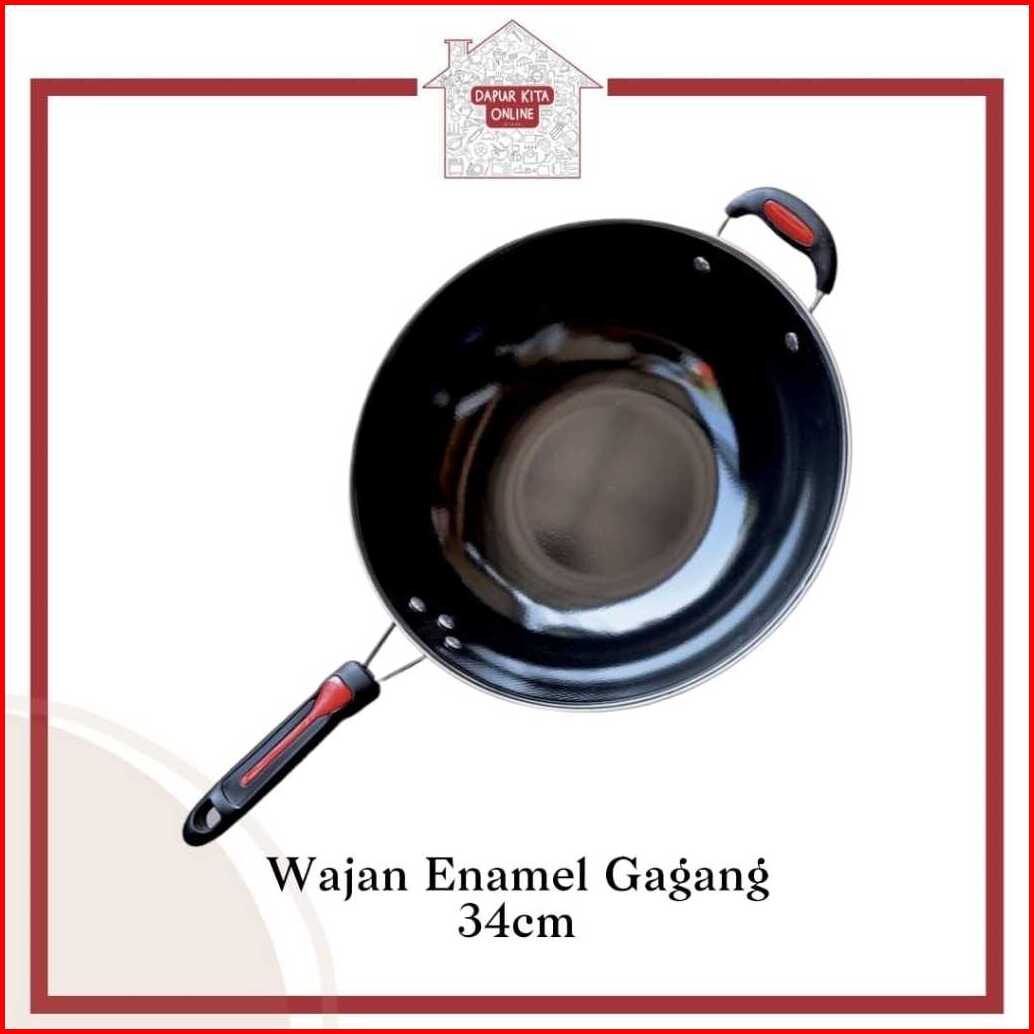 Wajan Enamel Hitam Anti Gores Terlaris Wajan Penggorengan Anti Lengket High Quality Gagang Kuping 32 Cm 34cm Gsf 1032