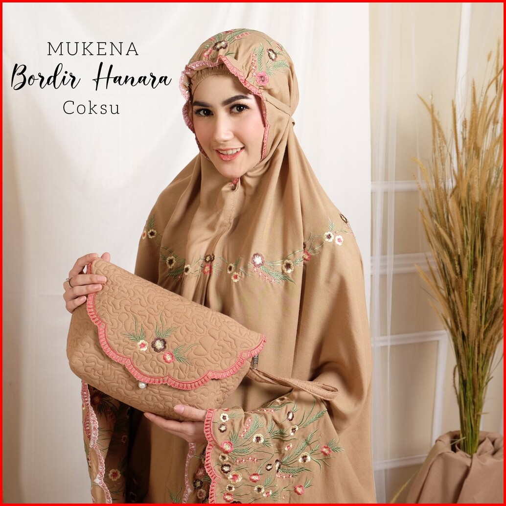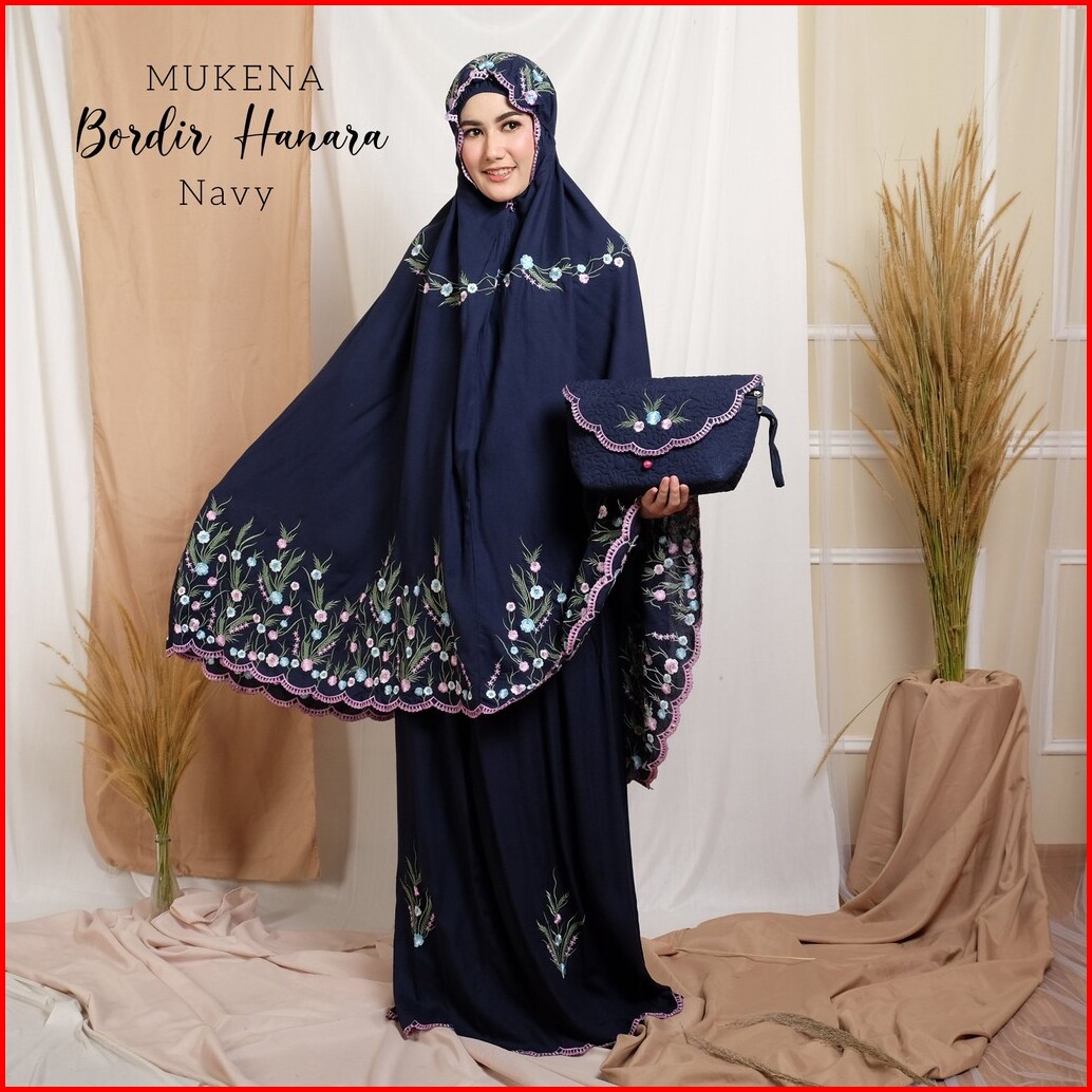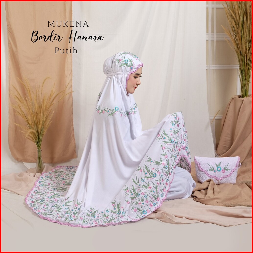 Jumuna - Mukena Dewasa Jumbo Bordir Manual Bahan Rayon Premium Set Tas Cantik Motif Bunga Hanara