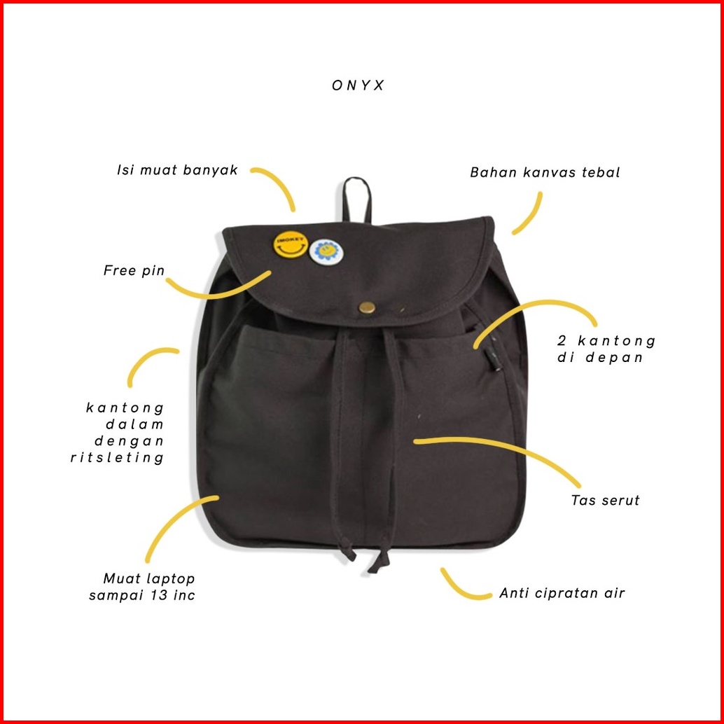 Imokey Onyx Black Basic Drawstring Backpack - Tas Ransel Pria Tas Ransel Wanita