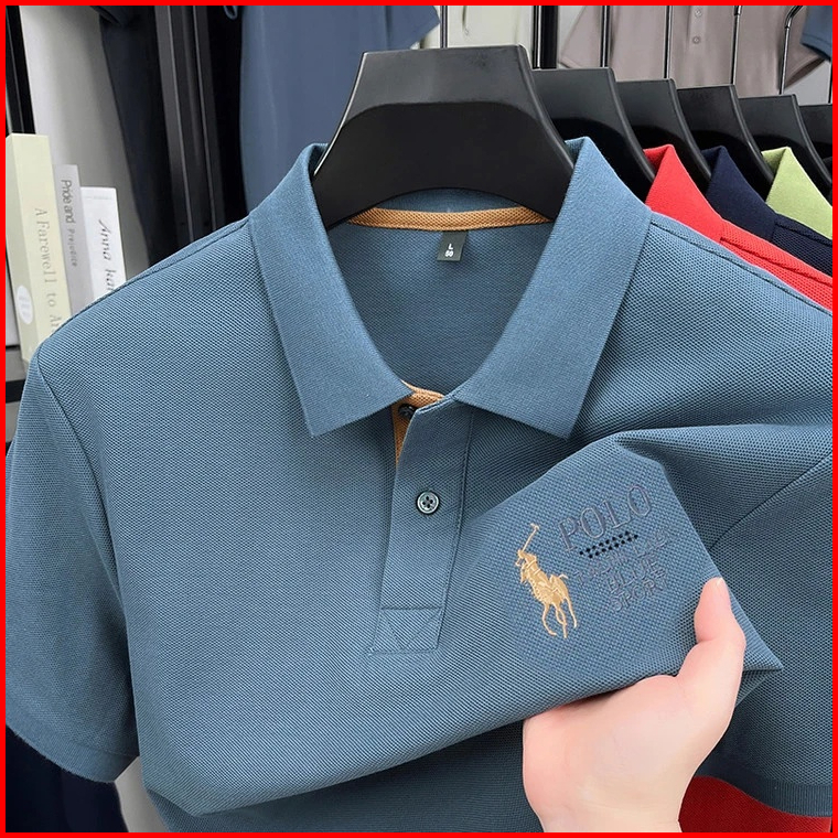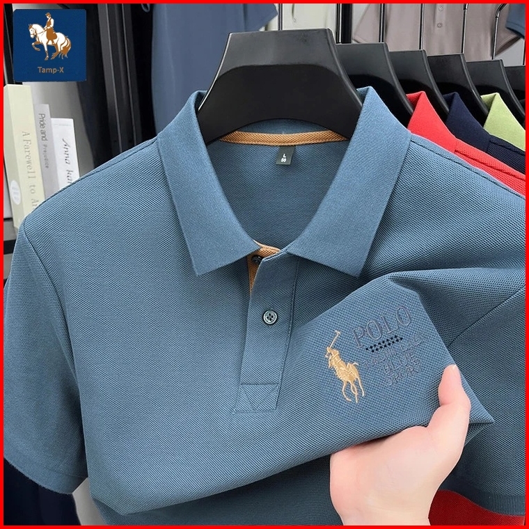 Tamp-x Slimfit Polo Shirt Pria Distro Kerah Casual Lengan Pendek Premium Bordir Korean Style Polo Biru Hitam