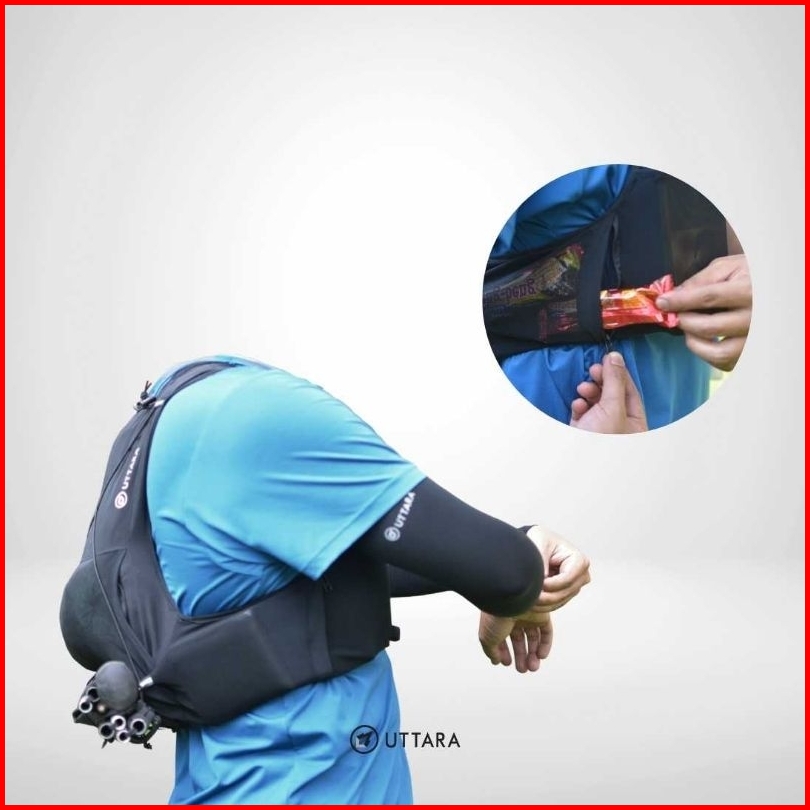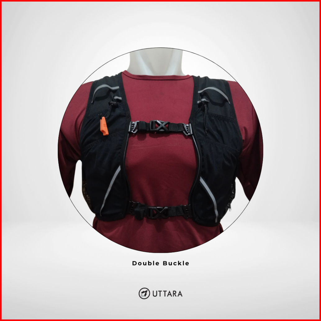 Double Buckle, Elastic Rope + Hook, Zipper Front Pocket, Pacer Vest