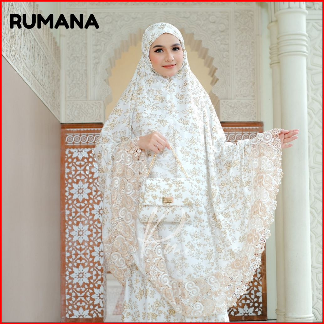 Melika - Mukena Jumbo Katun Foil Premium Renda Twotone Motif Rumana