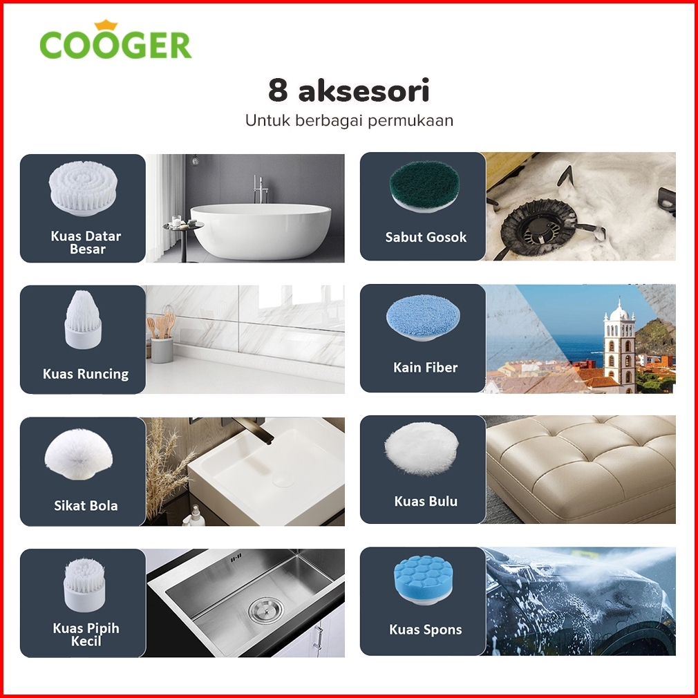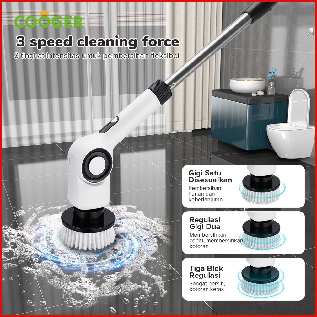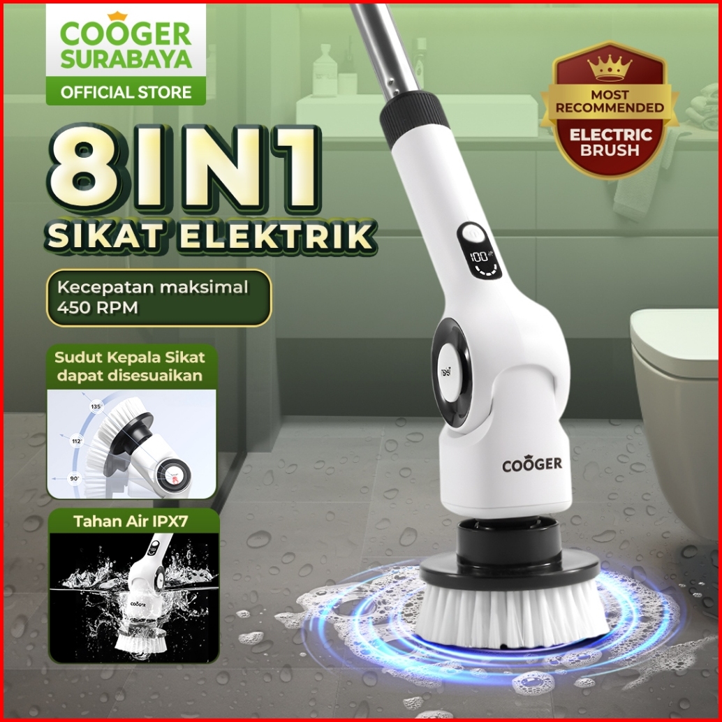 Cooger Surabaya 8in1 Sikat Elektrik Pembersih Tahan Air Kecepatan Tinggi Electric Brush Kamar Mandi