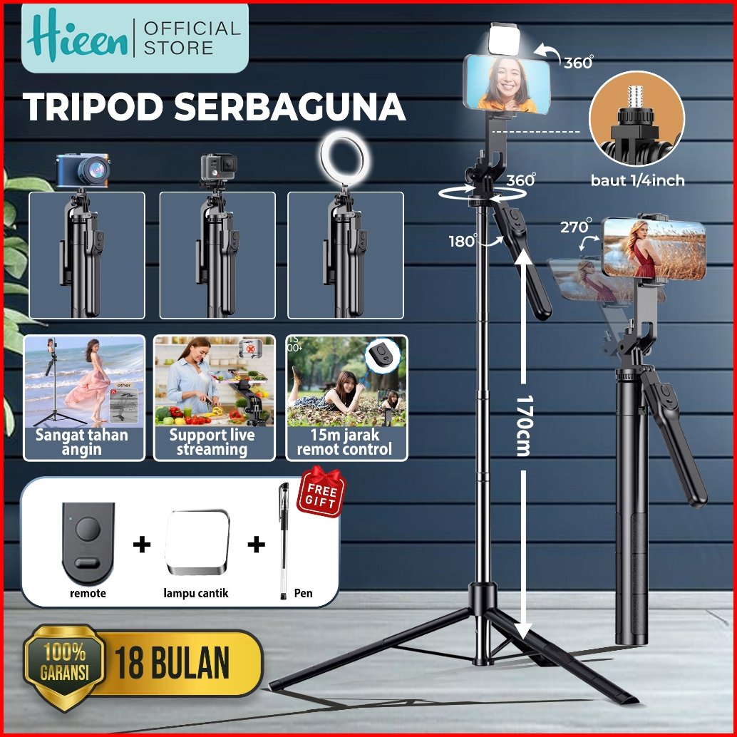 Hieen Tp20 Tongsis Remote Bluetooth Hp Tripod Selfie Stick Remote Bluetooth Hand Stabilizier 170cm Anti Jatuh