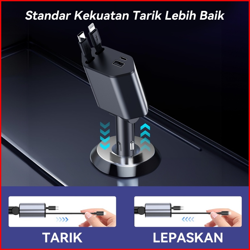Hieen 4in1 Car Charger 120watt Pengisian Daya Cepat Colokkan Charger Mobil 4in1 Usb Type-c Ios Lightning Adapter Cc20