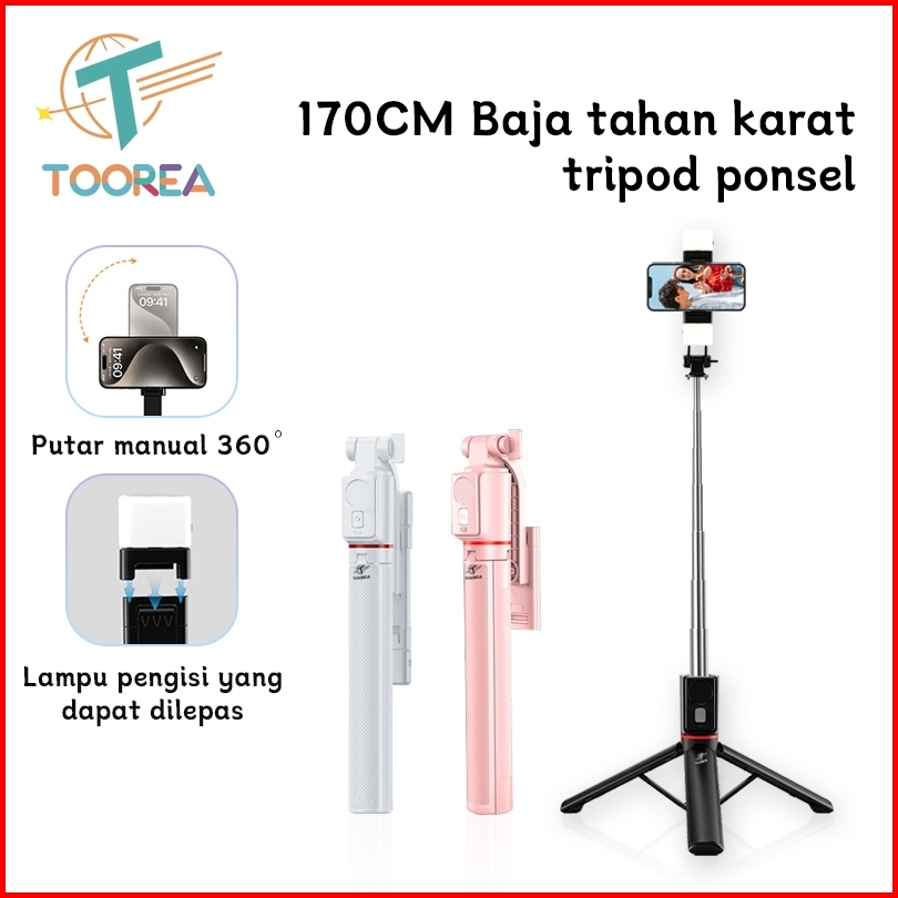 Toorea Uk 170cm Tongsis Tripod Bluetooth Selfie Stick Dengan Remote Control Bluetooth Hp Holder Mini Portabel Tongsis Un