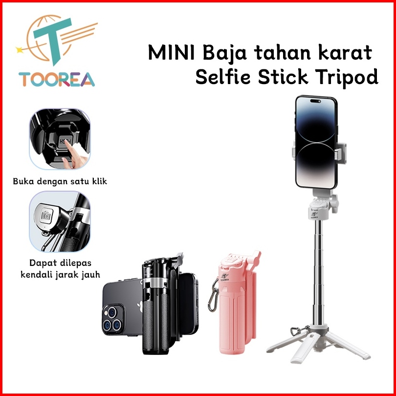 Toorea Mini Tripod Tongsis Portabel Stainless Steel Tripod Selfie Stick Super Mini Hp Holder Mini Grip Dengan Bluetooth
