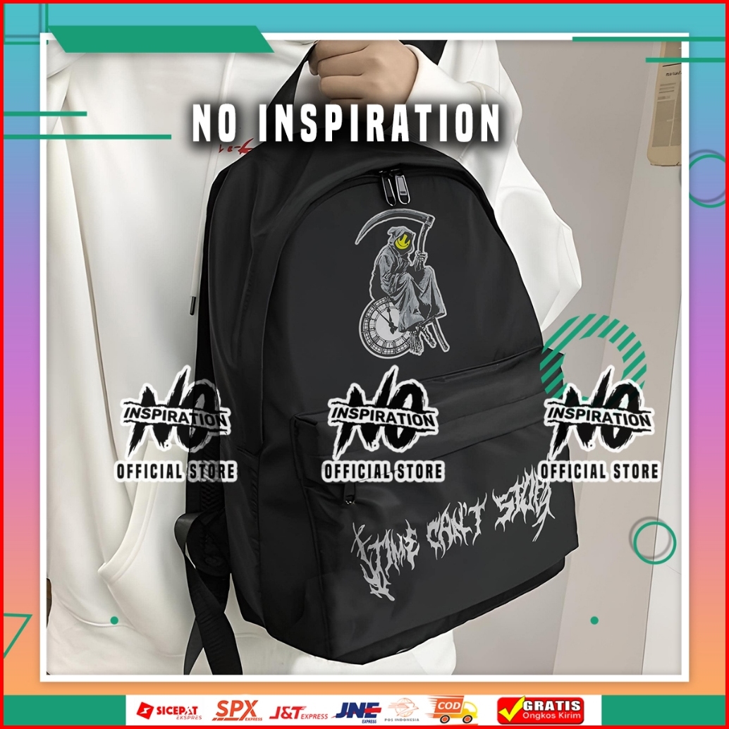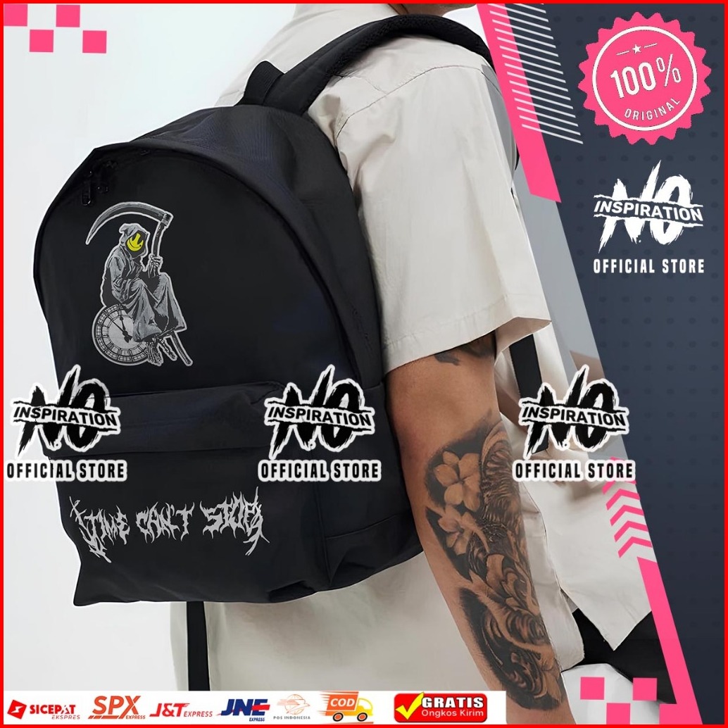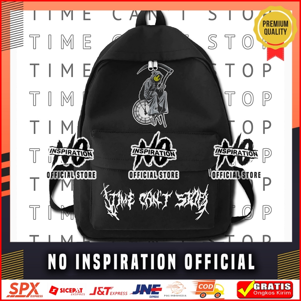No Inspiration Tas Ransel Time Can T Stop Backpack Metal Graphic Edition Tas Sekolah Tas Gendong