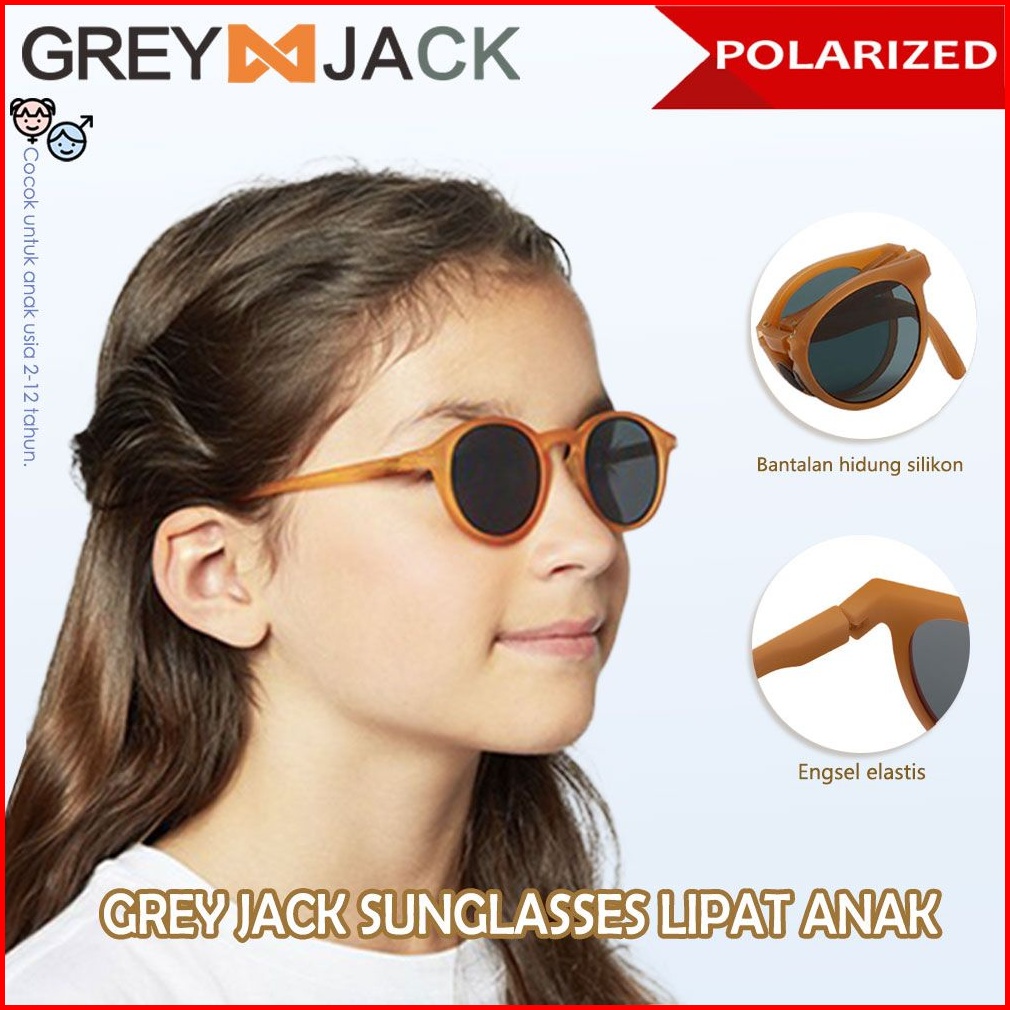 Grey Jack Kacamata Anak Sunglasses Foldable Hitam Anti Uv Bisa Di Lipat Model Bulat Tr90 Ringan Fashion Anak 078