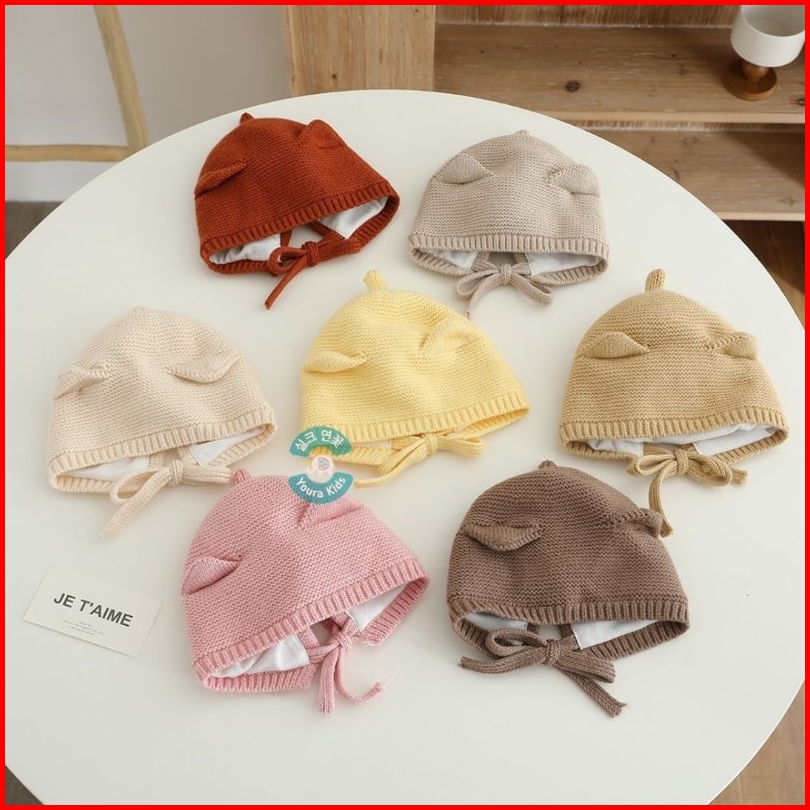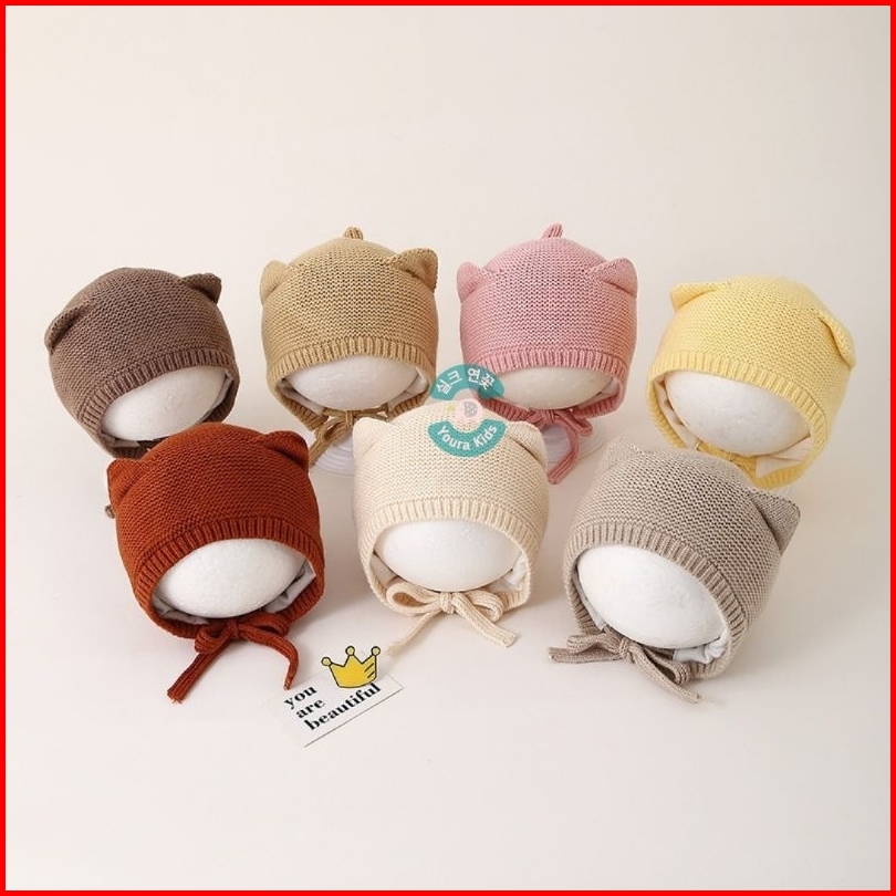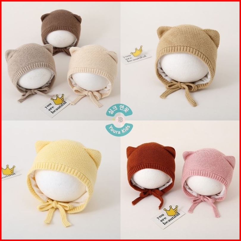 0 - 2 Thn Topi Bonnet Rajut Bayi Newborn Batita-cat Ear- -model Korea
