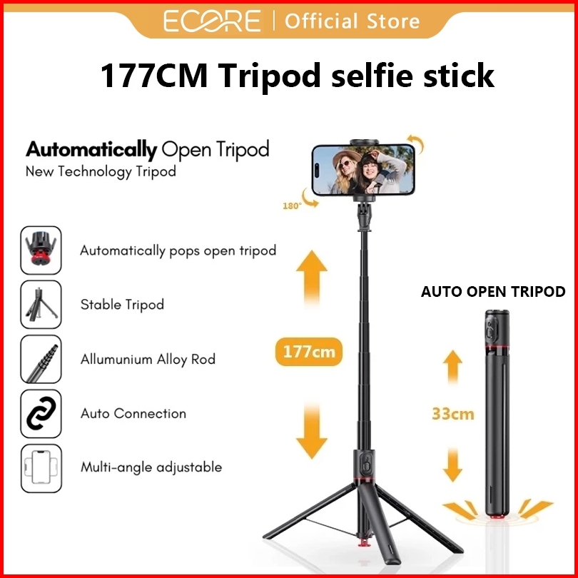 Ecore Tt01 Tongsis Bluetooth Tripod Automatic Pop Up Selfie Stick 177cm Portable Aluminium Multifungsi Magnetik Bluetoot