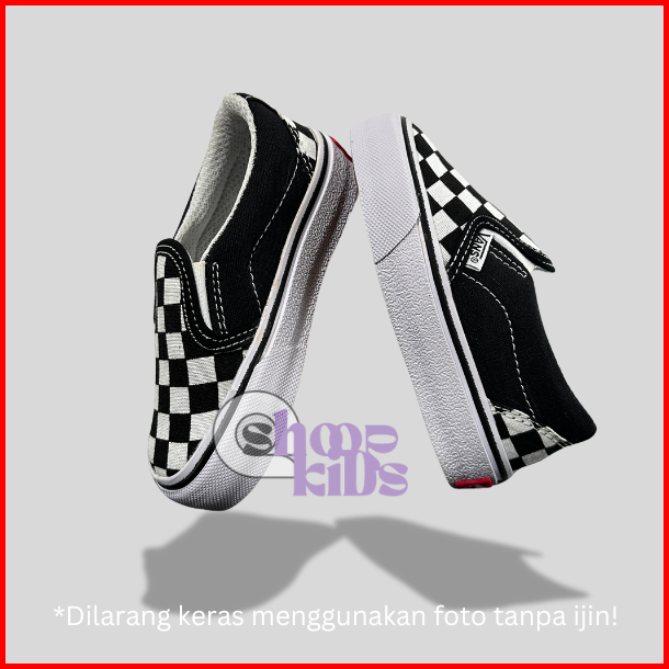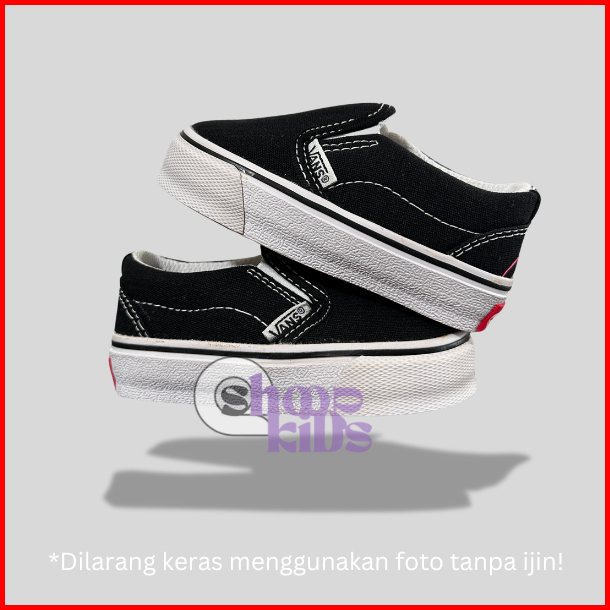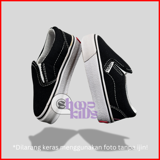 Sepatu Sneakers Anak Laki Laki Vans Slip On Black White Good Quality Premium