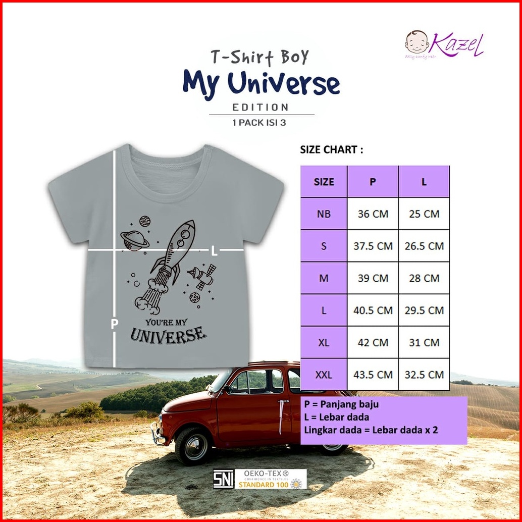 3pcs Kazel Tshirt 1-6 Tahun Oblong Rose Space Summer My Universe Atasan Anak Laki-laki Boy Cbks Sdi