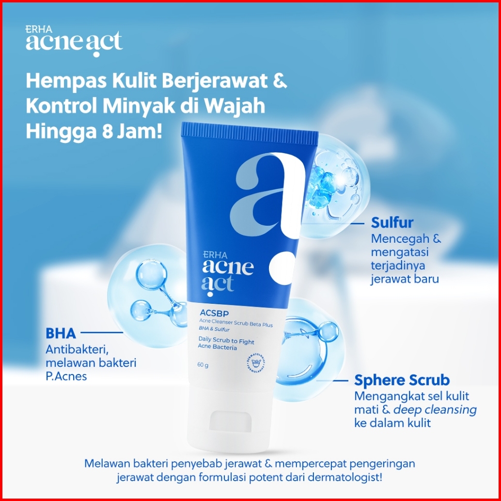 Erha Acneact Acsbp Acne Cleanser Scrub Beta Plus 60g - Sabun Wajah Scrub Kulit Jerawat Bha Sulfur