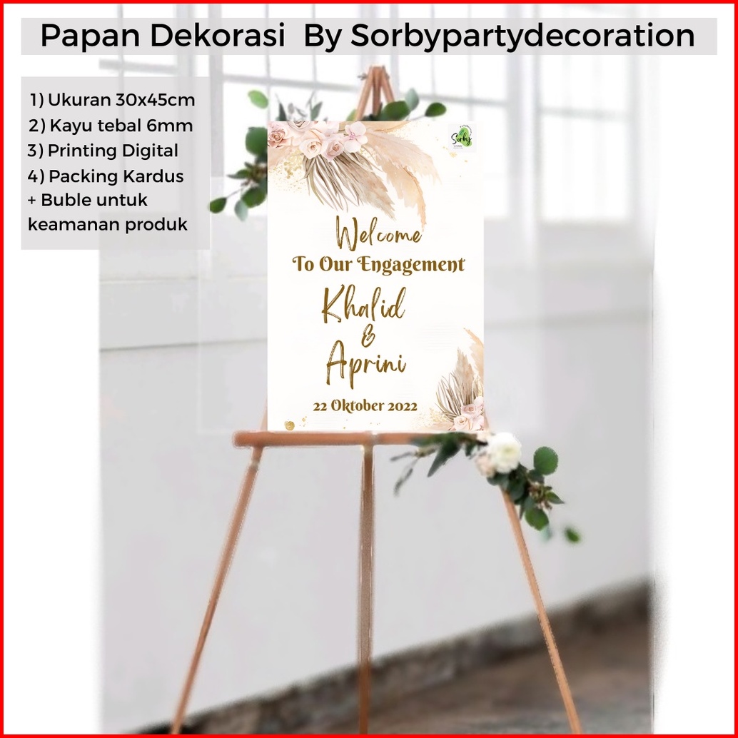 Papan Dekorasi Lamaran Nikahan Aqiqah Digital Printing Dengan Kaki Kayu