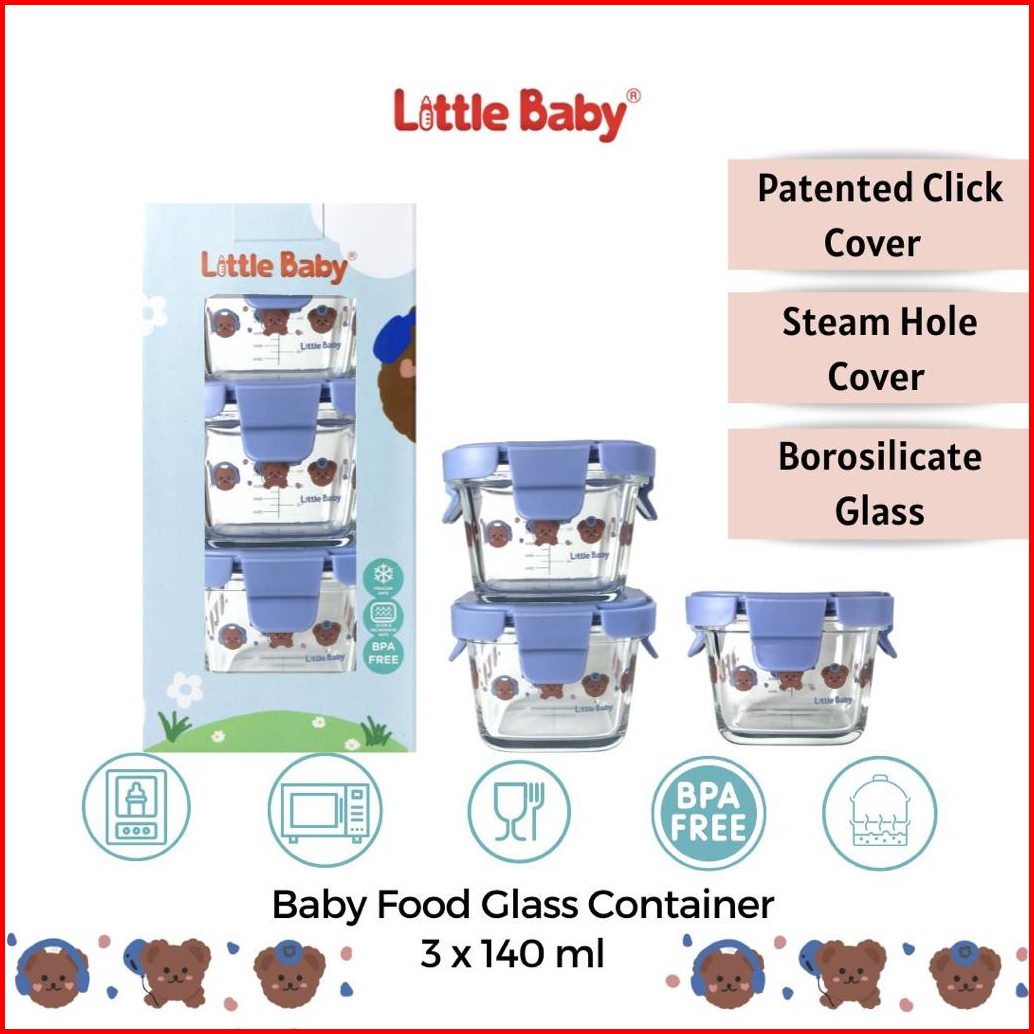 Little Baby - Tempat Makan Kaca Set Kedap Udara Wadah Mpasi Kaca Baby Food Kontainer Kontainer Mpasi Kaca Glass Food Con