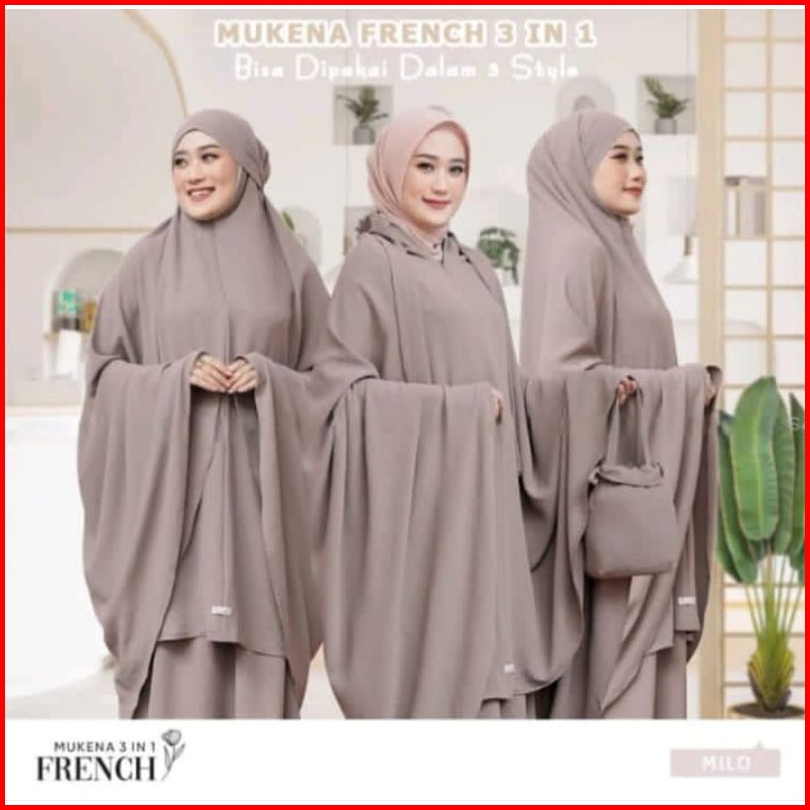 Mukena Bahan Crinkle Polos Tanpa Renda Dewasa 3in1