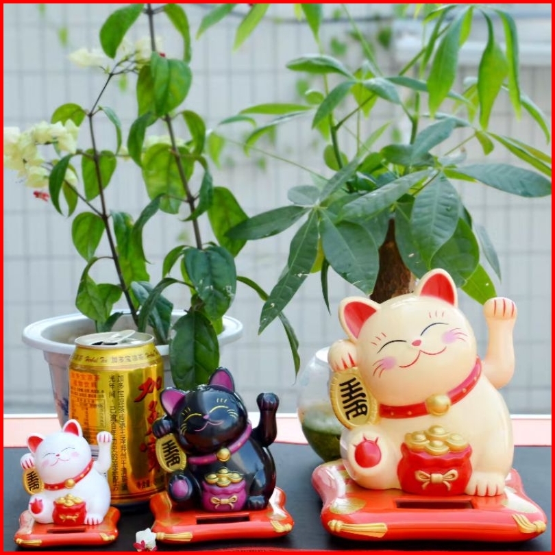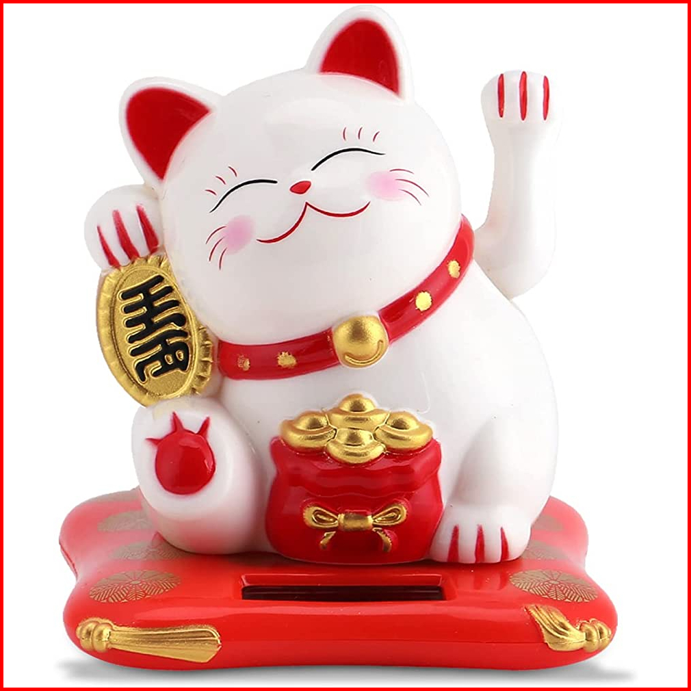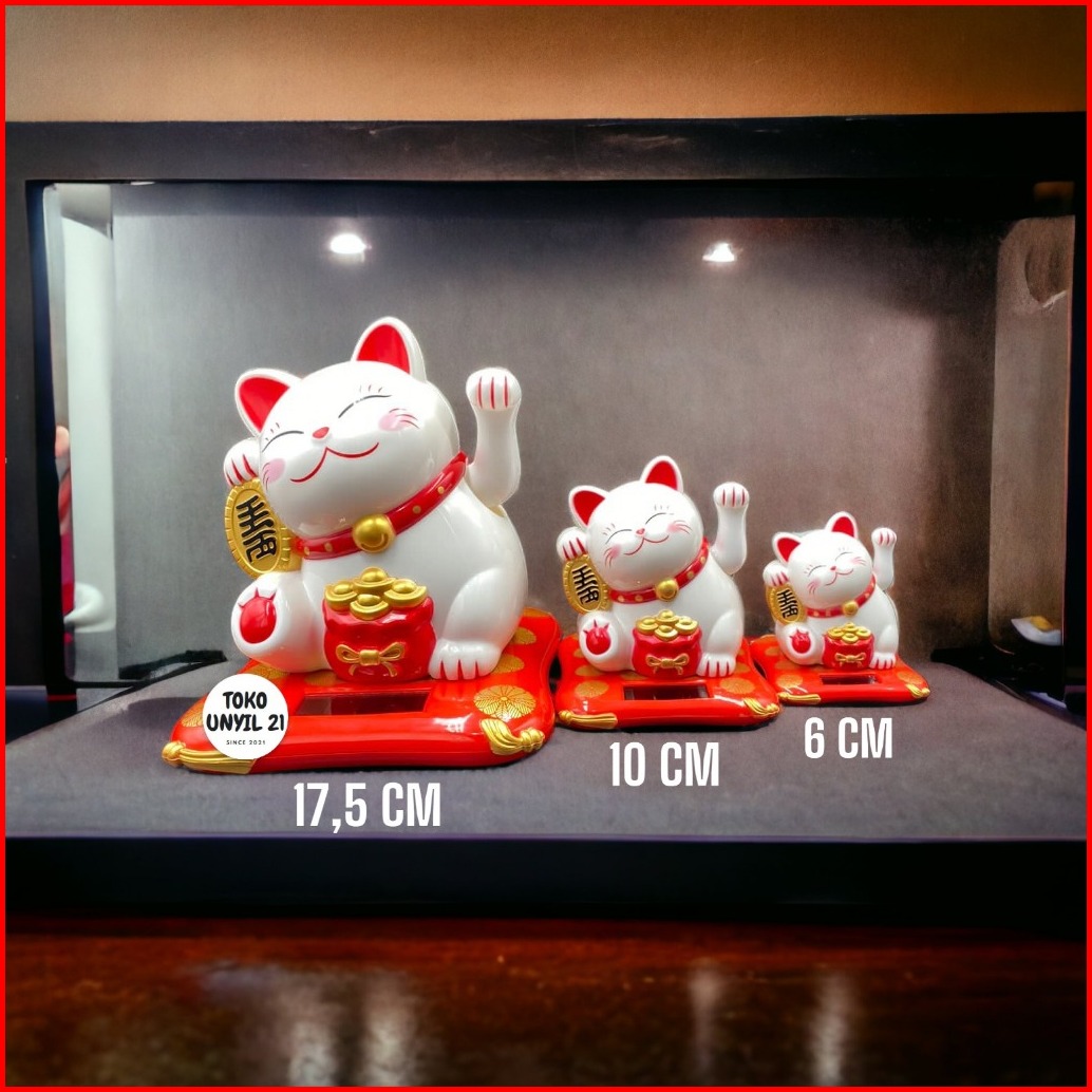 10cm Lucky Cat White Maneki Neko Cat Pajangan Kucing Hoki Pajangan Dashboard Mobil Solar Luckycat