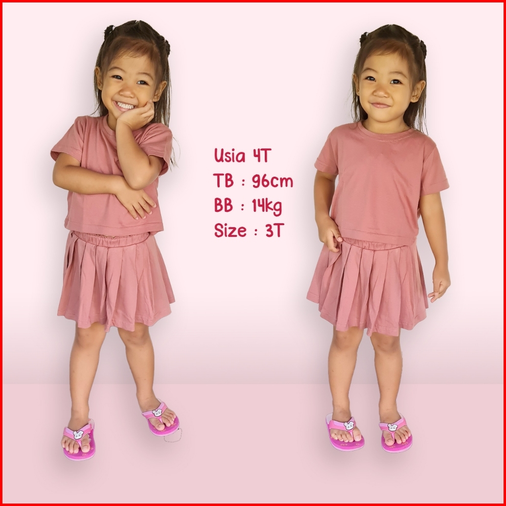 Setelan Dress Jennie Pendek Bayi Dan Anak Newborn Sampai 6 Tahun Rok Lipit Korea