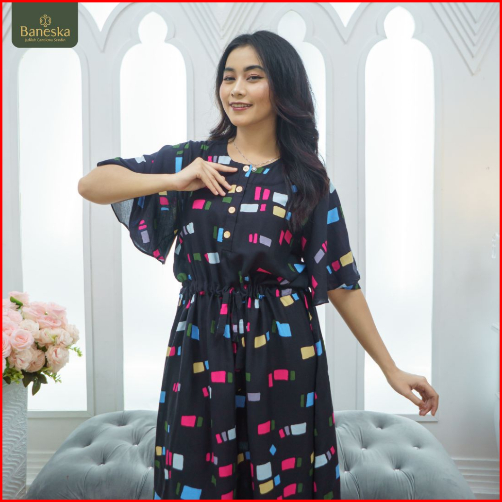 New Baneska Daster Busui Mix Series Daster Kancing Atas Busui Dress Karet Pinggang Bumil Rayon Premium Cantik Warna Gela