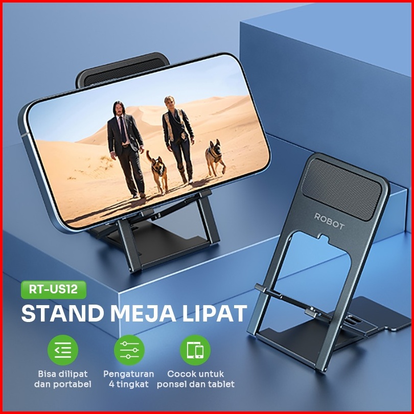 Robot Phone Holder Rt-us12 Ultra-thin Foldable Portable 4 Level Angle Adjustable Original - Garansi 1 Tahun