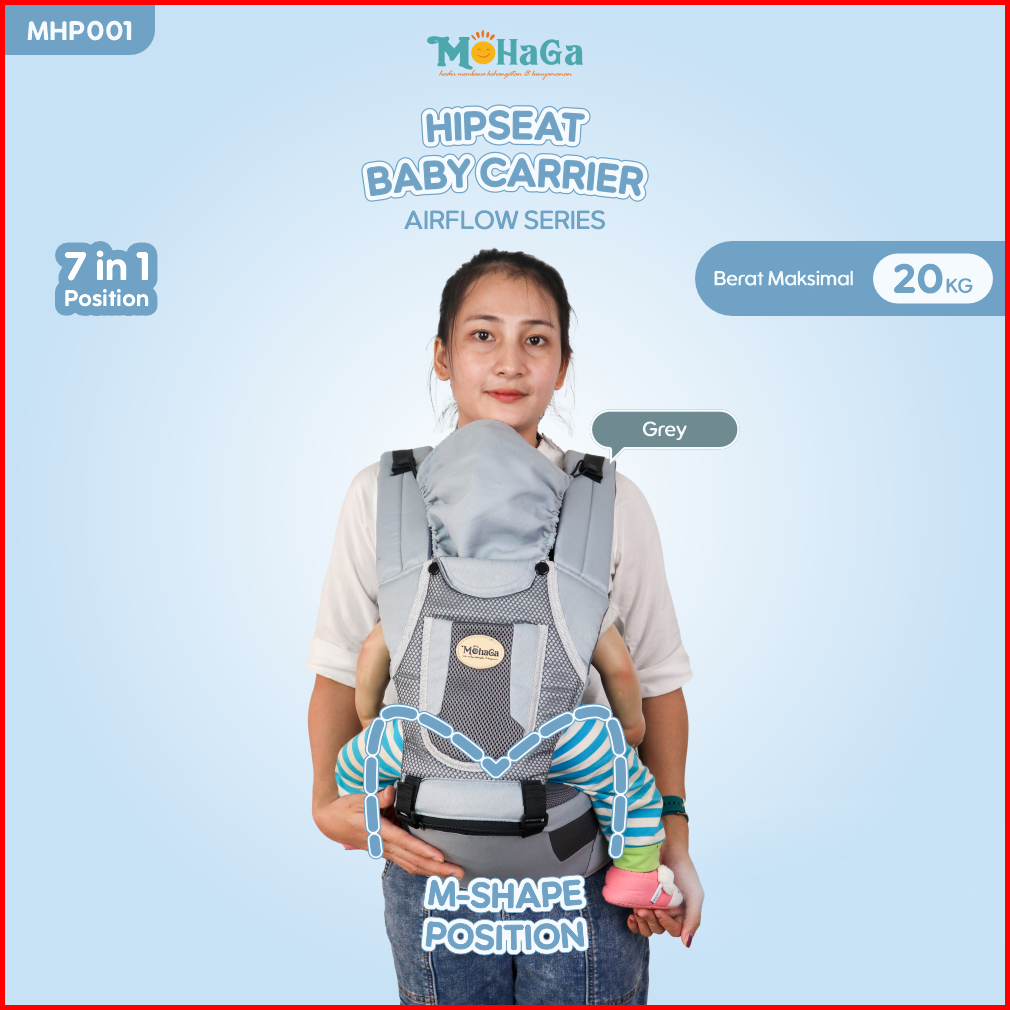 Mohaga - Gendongan Bayi Hipseat - Gendongan Depan Belakang M-shape Gendongan Multifungsi Premium