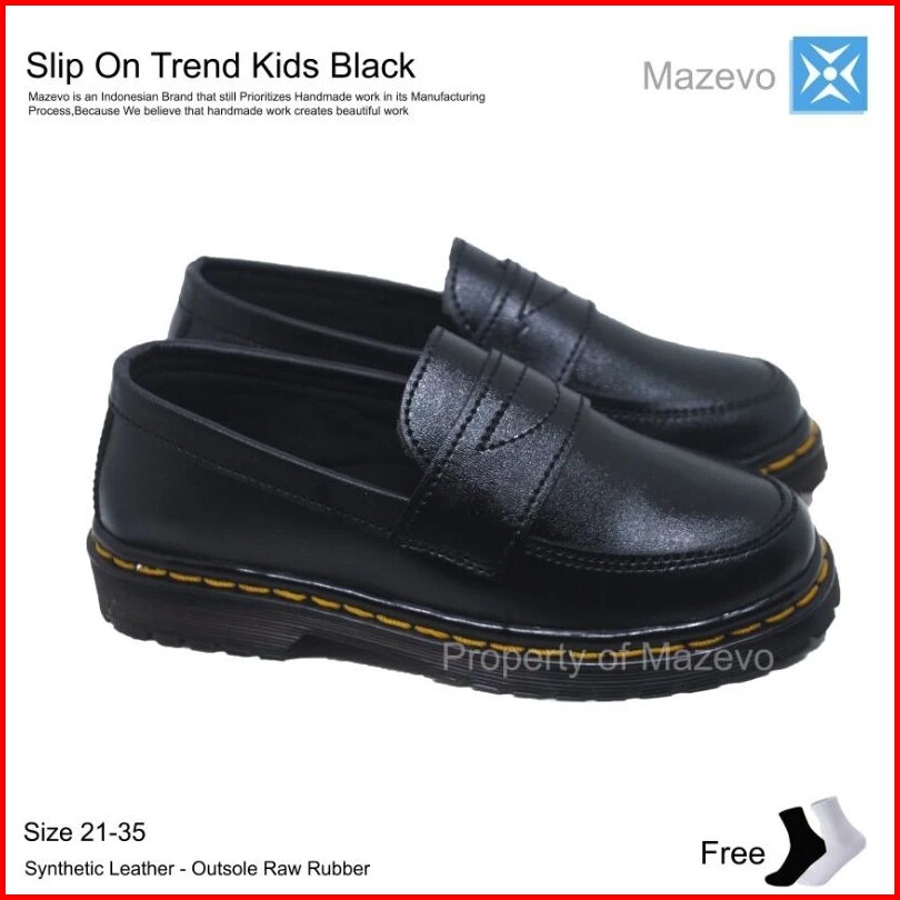 Sepatu Slip On Anak Laki Laki Perempuan Sol Karet Mentah Anti Slip Warna Black Mazevo Terjangkau Size 21 Sd 35